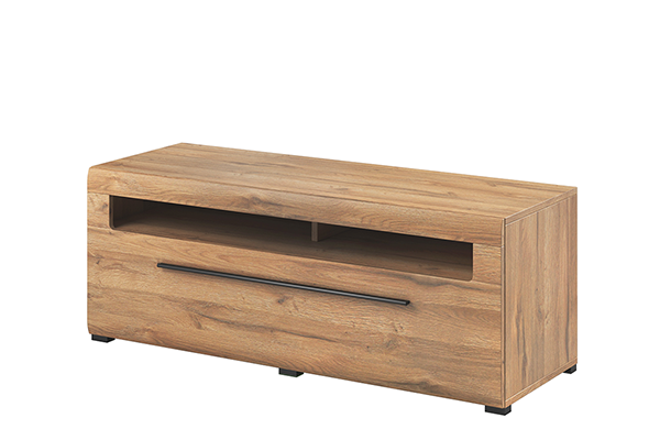 Duża szafka RTV z kolekcji TULSA idealnie sprawdzi się w salonie jako podstawka pod wszelkiego rodzaju sprzęt elektroniczny. W szafce znajduje się podwójna szuflada oraz szeroka wnęka, w której można swobodnie umieścić np. sprzęt RTV czy schować nieestetyczne okablowanie.