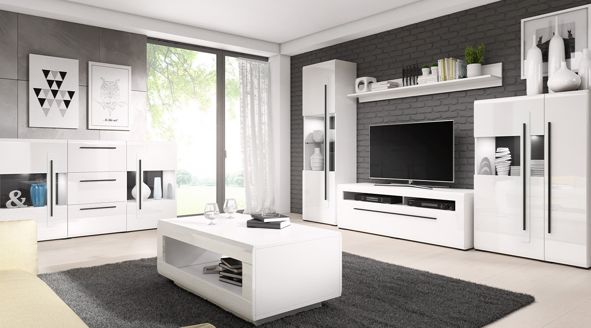 TULSA zobacz całą kolekcję Szafka RTV - kolor biały połysk