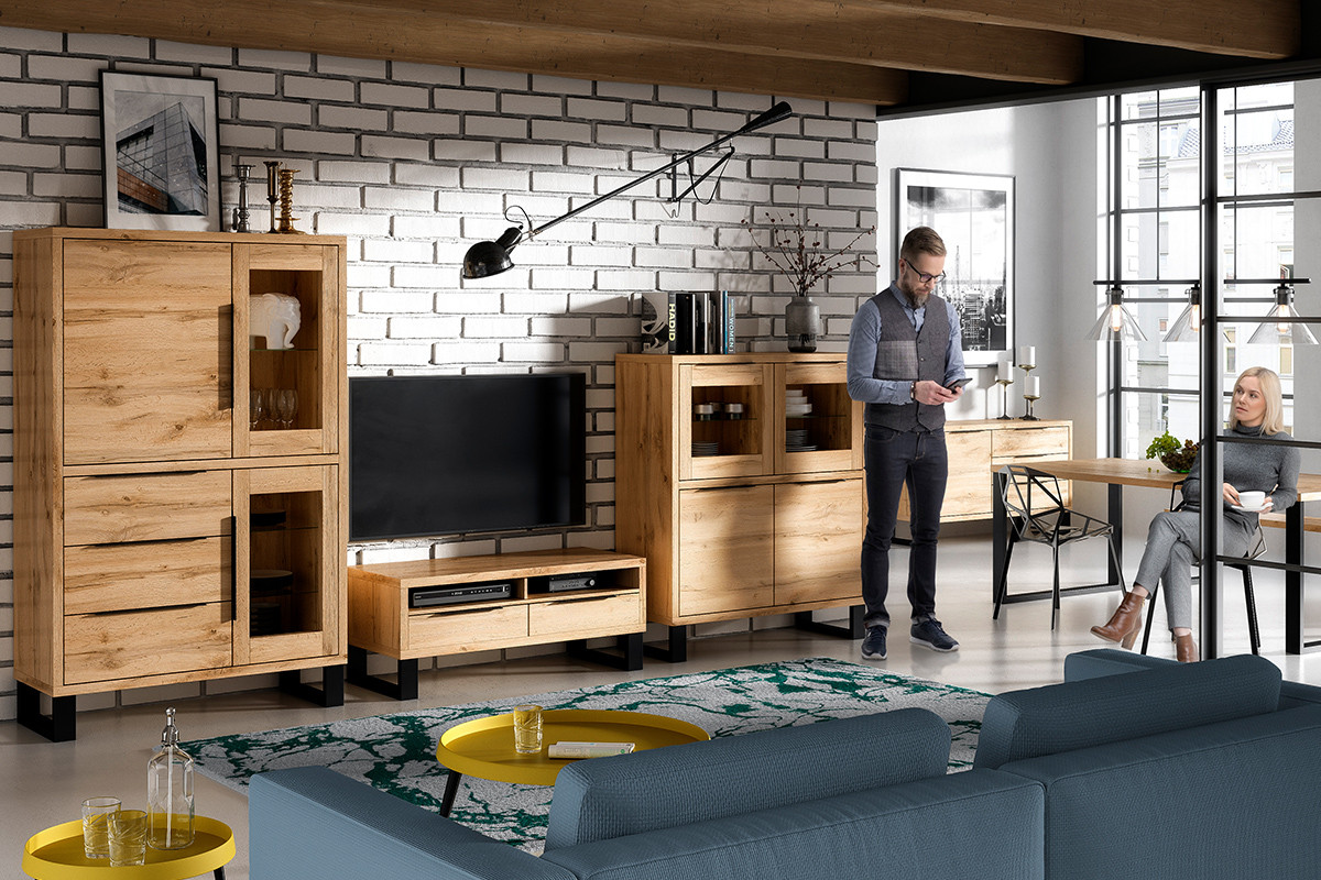 HALLE zobacz całą kolekcję Witryna - kolor dąb/czarny