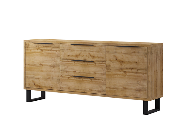 Wykonana z najwyższej jakości płyty MDF, odpornej na zabrudzenia i niezwykle trwałej. Komoda składa się z trzech szuflad i półek ukrytych za dwoma drzwiczkami co pozwala na uporządkowanie nawet największych przestrzeni. Doskonale sprawdzi się jako pojedynczy mebel, a w konfiguracji z innymi meblami z kolekcji HALLE stworzy niezwykle gustowne wnętrze.Funkcja cichego domyku gwarantuje komfort użytkowania.