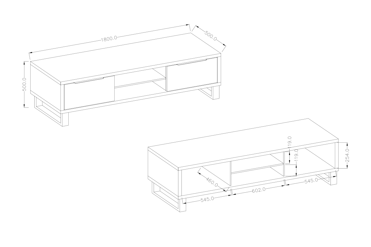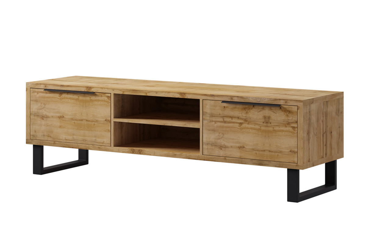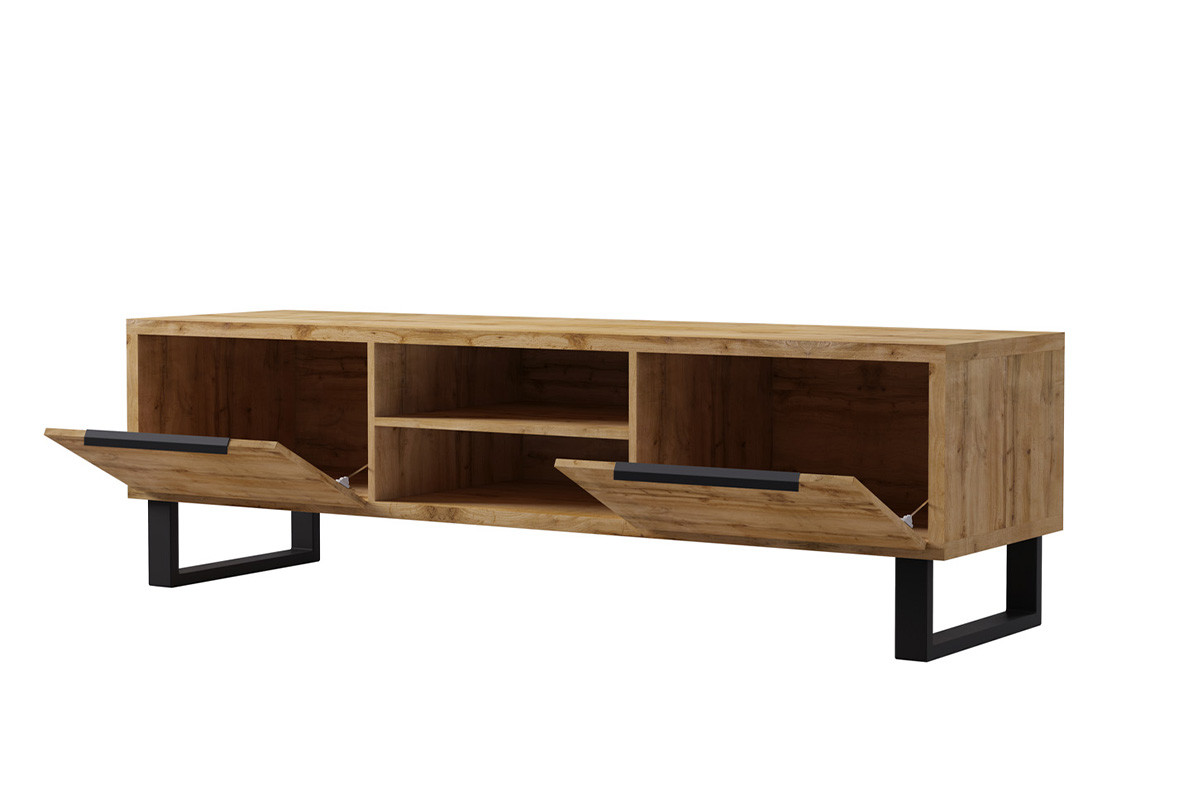 Ta szafka RTV bez wątpienia pomieści cały sprzęt elektroniczny znajdujący się w Twoim domu. Wykonana z najwyższej jakości płyty MDF, niezwykle trwałej i odpornej na zabrudzenia, co w połączeniu z czarnymi, metalowymi nóżkami i uchwytami stanowi element wystroju, który bez wątpienia unowocześni Twoje mieszkanie.