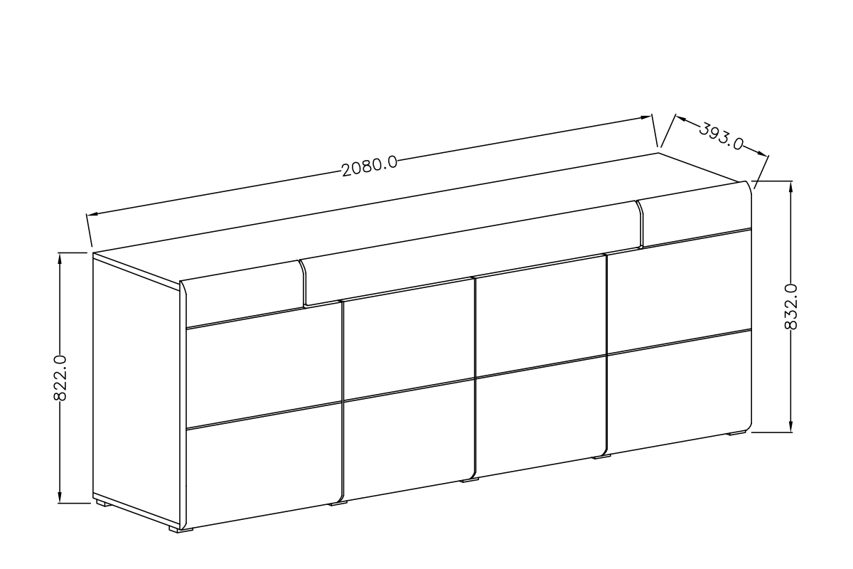 - 208x83x39 cm