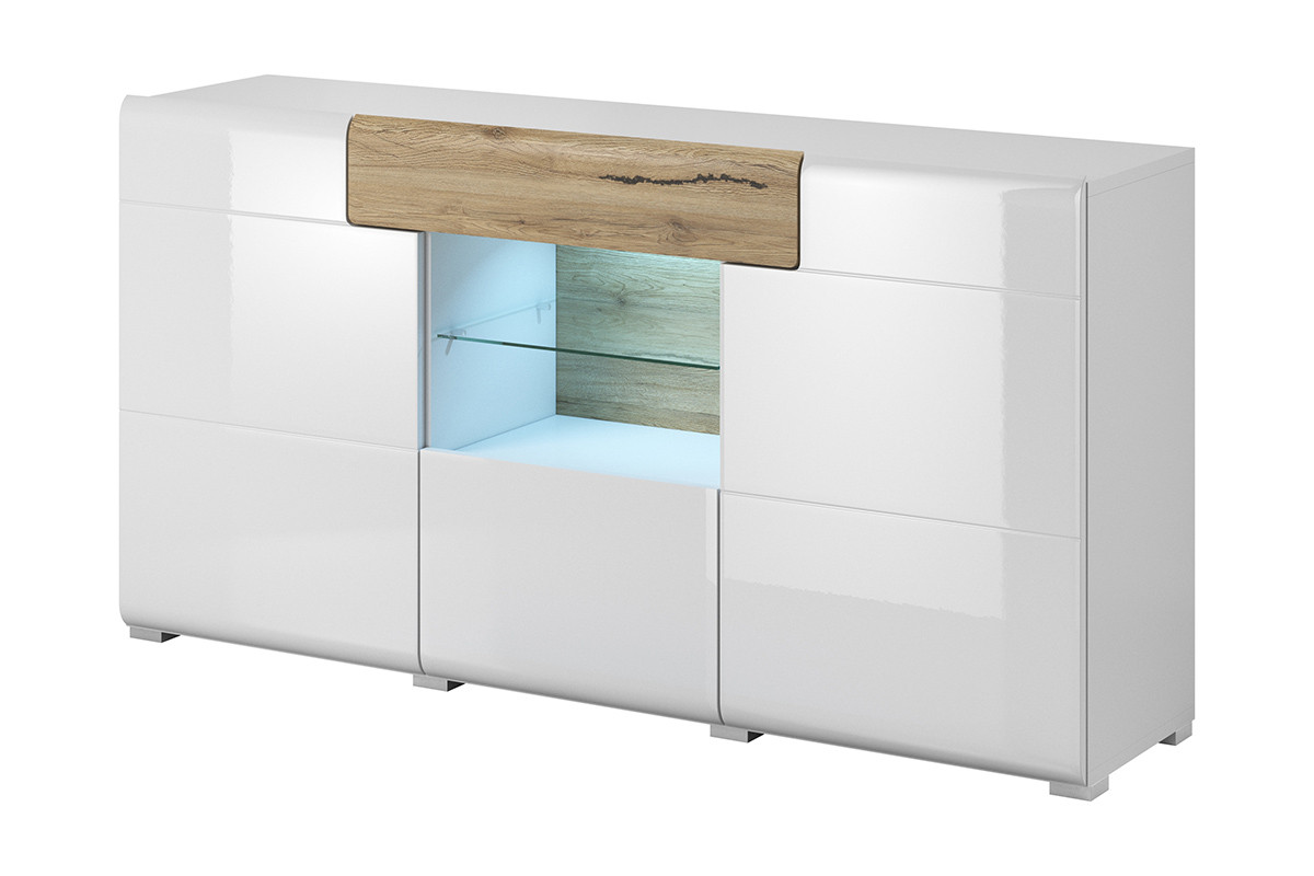 Komoda z witryną TOLEDO - kolor biały/jasny dąb