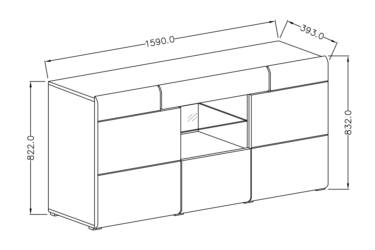 Komoda z przeszkloną wnęką z kolekcji Toledo doskonale zaaranżuje każde pomieszczenie. Jej prosta, a zarazem nowoczesna forma sprawi, że Twoje wnętrze zyska całkowicie nowy, świeży wygląd. Została wykonana z najwyższej jakości płyty MDF pokrytej folią membranową, łatwą do utrzymania w czystości i odporną na wilgoć.Szuflada posiada funkcję pełnego wysuwu a ciche kulkowe prowadnice nie zaburzą harmonii Twojego domu.