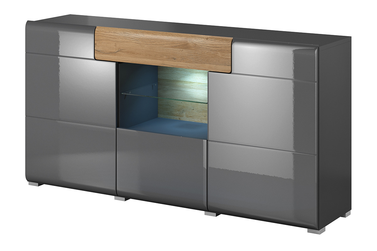 Komoda z witryną TOLEDO - kolor antracyt połysk/dąb naturalny