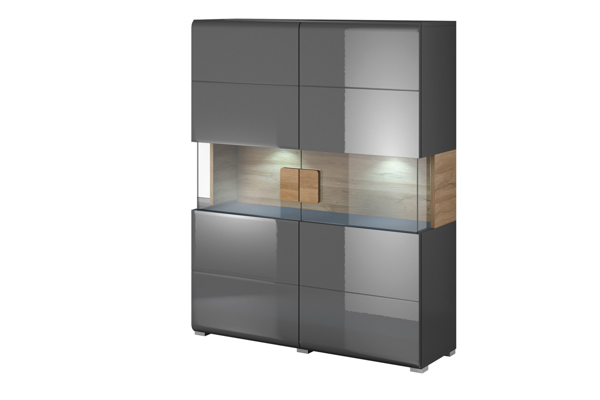TOLEDO zobacz całą kolekcję Komoda z witryną - kolor antracyt połysk/dąb naturalny