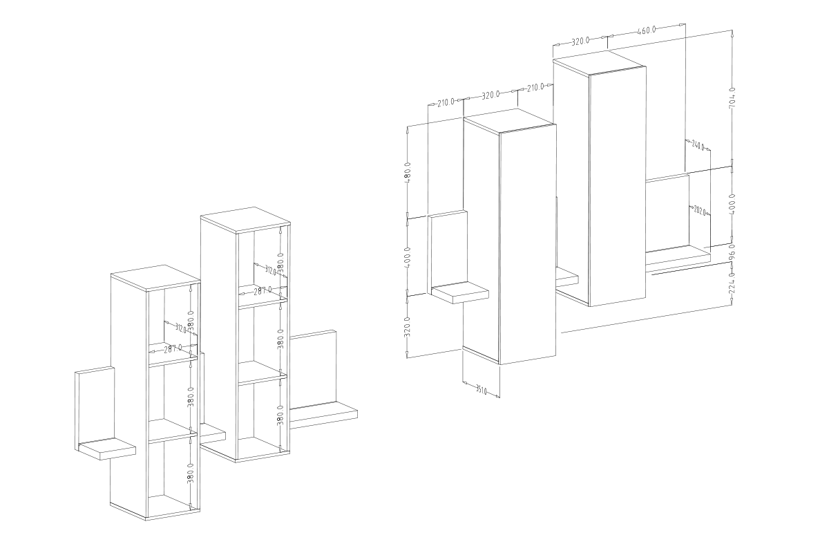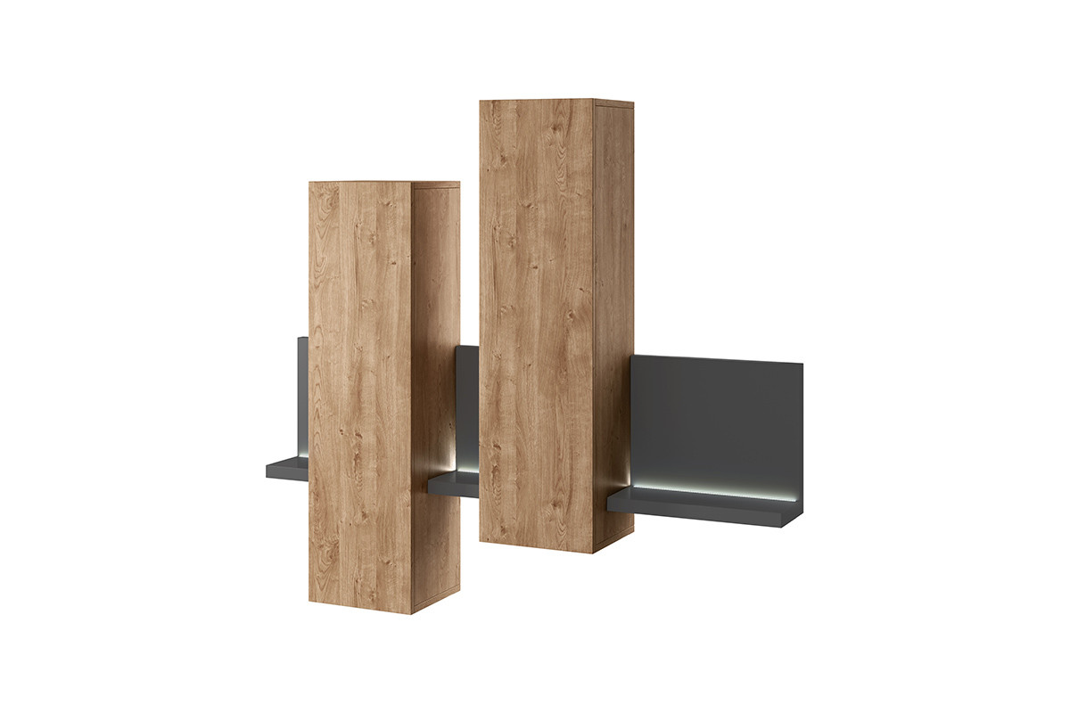 Szafka wisząca BOTA sprawi, że przestrzeń na ścianie będzie nowocześnie i efektownie zaaranżowana. Prostota wykonania doskonale współgra z finezyjnym, niesymetrycznym ułożeniem szafek. Połączenie dwóch szafek wiszących z ozdobną półką w tym samym kolorze, na tle kontrastującej z nimi ciemniejszej płyty skupia na sobie wzrok nawet tych najbardziej wymagających odbiorców.