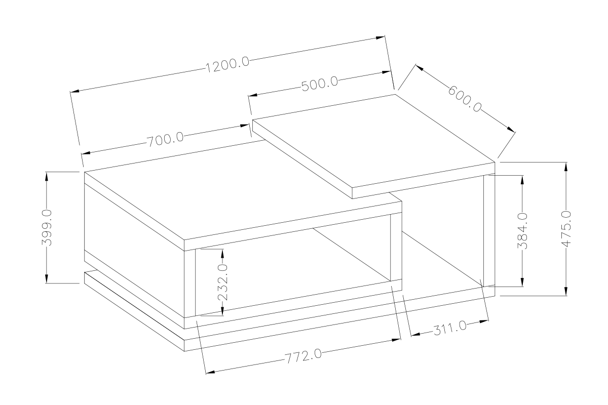 Stolik kawowy z kolekcji BOTA nada wnętrzu styl, a jej prosty geometryczny kształt wkomponuje się w każde wnętrze. Mebel składa się z kolorystycznie kontrastujących ze sobą finezyjnie ułożonych płyt, które tworzą dwie praktyczne i zarazem modne wnęki – pomogą utrzymać porządek, a jednocześnie wyglądają naprawdę stylowo. Maksymalny udźwig stolika wynosi 40 kg.
