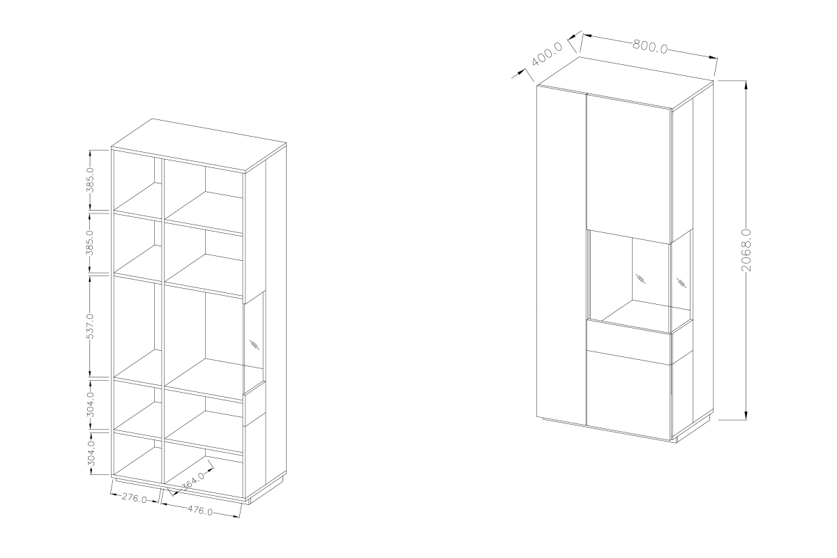 Minimalistyczna prawa witryna z kolekcji Silke sprawi, że każde wnętrze zyska nowy, niepowtarzalny wygląd. Idealnie wpasowującą się do każdego salonu, dostępna w aż trzech połączeniach kolorystycznych – białego połysku z dębem, antracytu z dębem, a także białego z szarym, co z łatwością pozwoli zaaranżować przestrzeń.Fronty wykonane z niezwykle trwałego, odpornego na zarysowania, wgniecenia i środki chemiczne materiału polygloss zapewniają wygodę użytkowania.