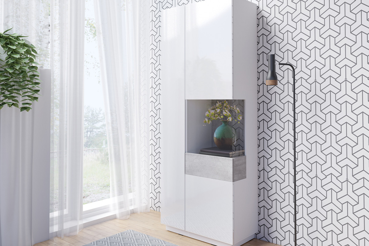 SILKE zobacz całą kolekcję Witryna Prawa - kolor biały połysk/szary