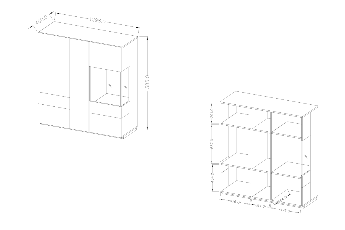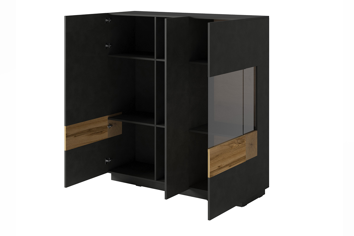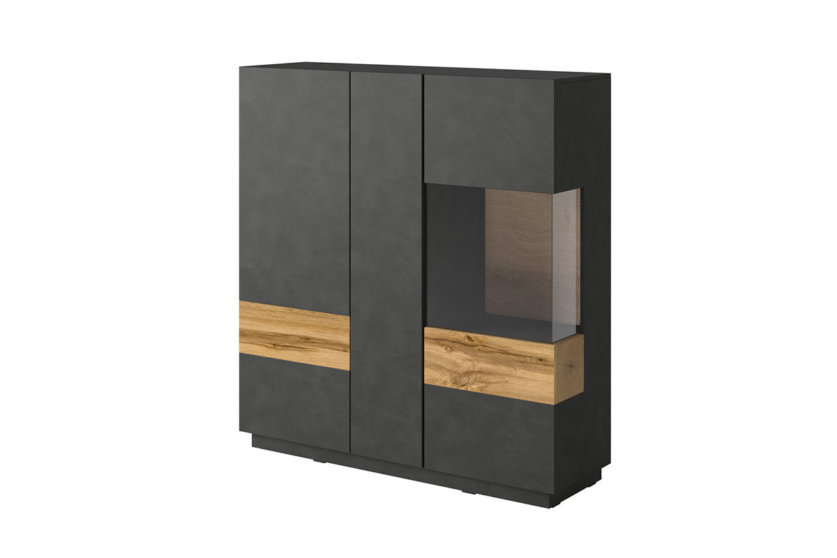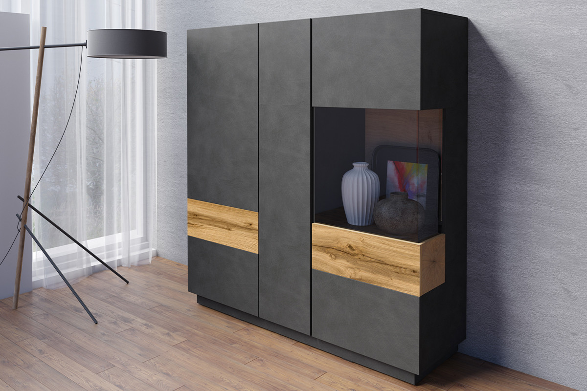 SILKE zobacz całą kolekcję Komoda z witryną - kolor antracytowy/dąb