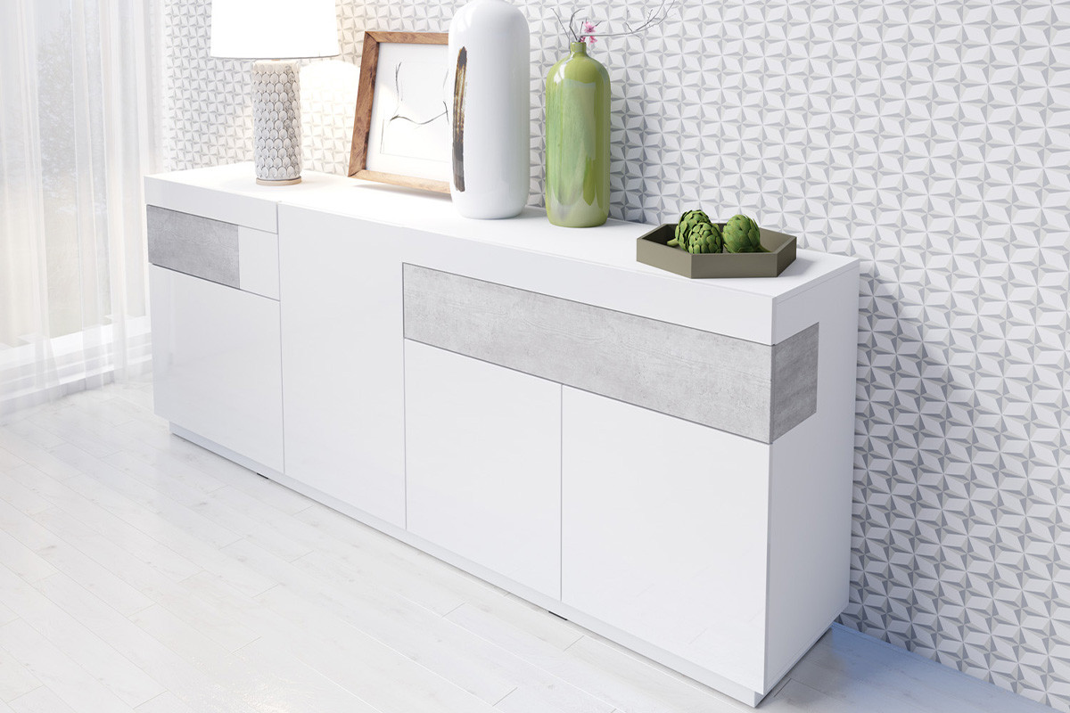 SILKE zobacz całą kolekcję Komoda - kolor biały połysk/szary