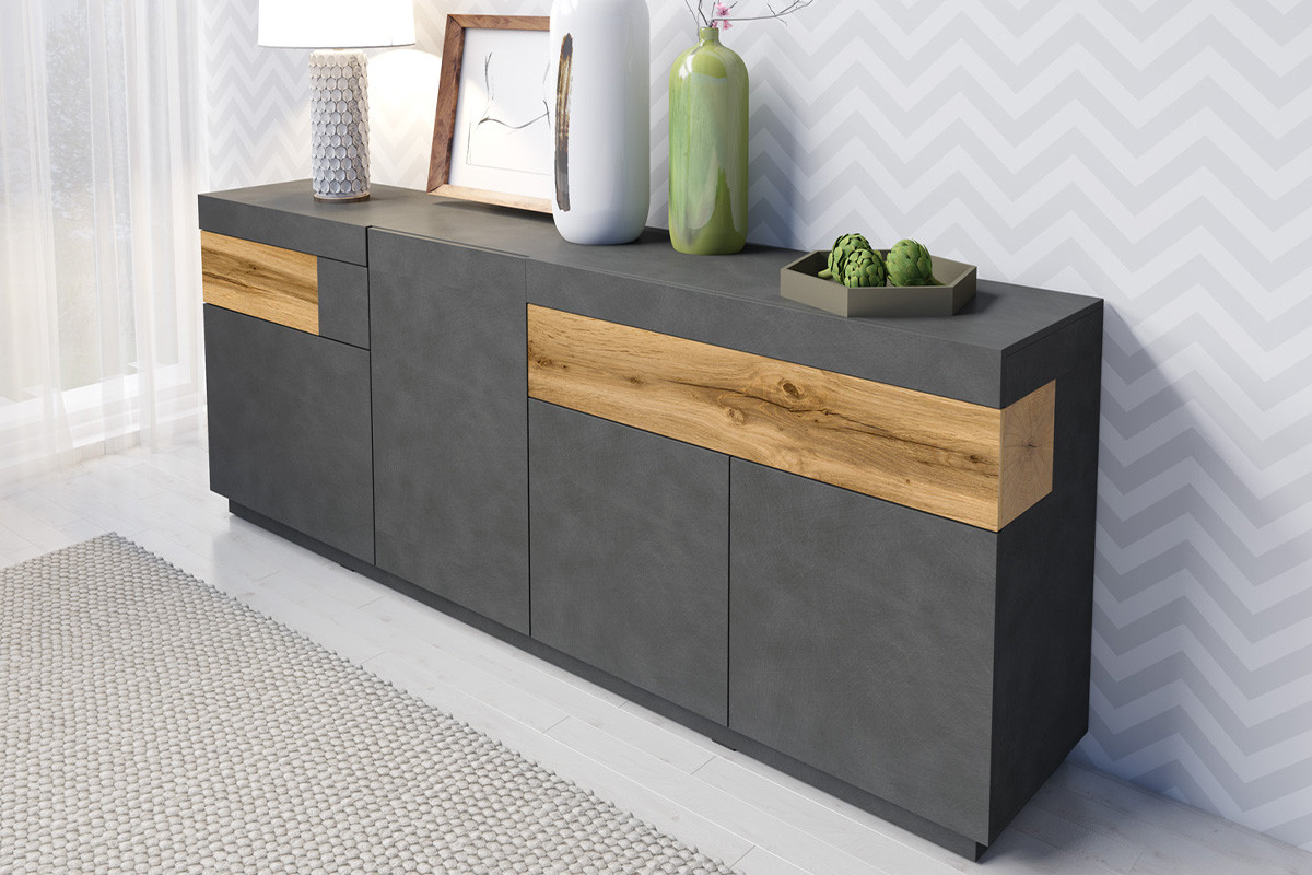 SILKE zobacz całą kolekcję Komoda - kolor antracytowy/dąb