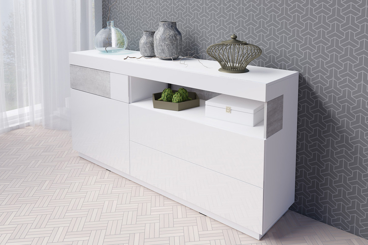 SILKE zobacz całą kolekcję Komoda z witryną - kolor biały połysk/szary