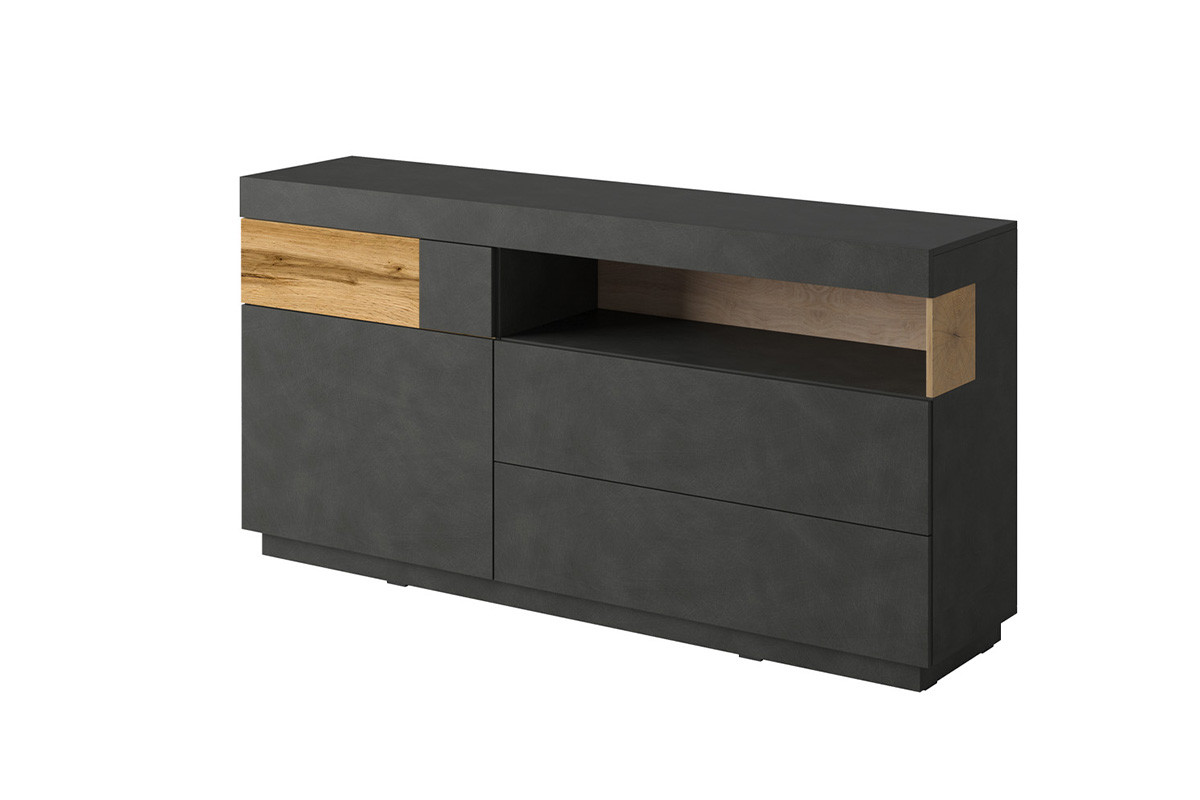 SILKE zobacz całą kolekcję Komoda z witryną - kolor antracytowy/dąb