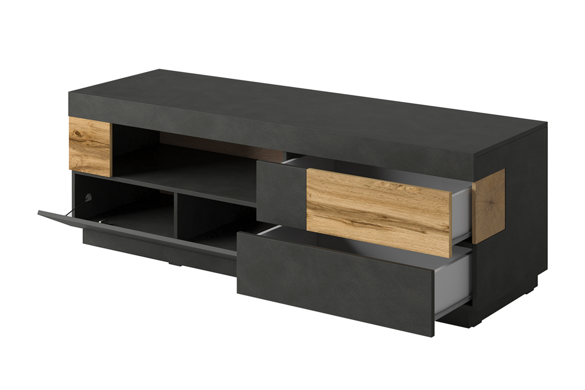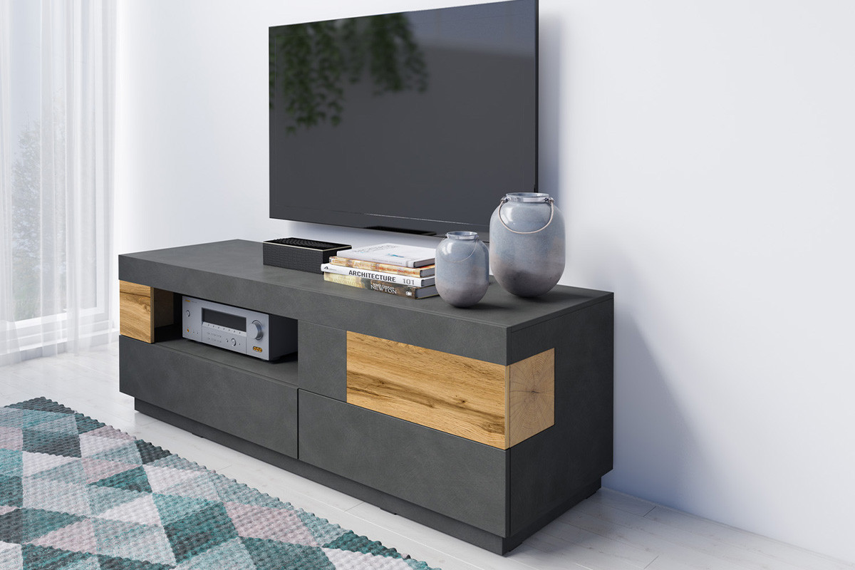 SILKE zobacz całą kolekcję Szafka RTV - kolor antracytowy/dąb