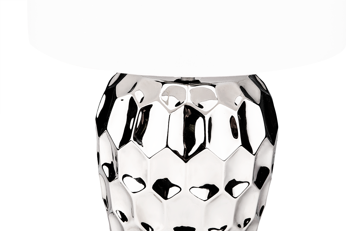 Dobre oświetlenie wnętrza jest kluczowe w osiągnięciu komfortu, bez którego trudno wypoczywać w domowym zaciszu. Lampa stołowa z kolekcji EFO nie tylko rozświetli nasze cztery kąty, ale również zadba o wizualny wystrój pomieszczenia. To za sprawą zdobionej podstawy lampy, wykonanej z ceramiki o lśniącej fakturze. Taki detal z pewnością doda błysku wystrojowi, jednocześnie będąc nienachalną ozdobą skromnego pomieszczenia.