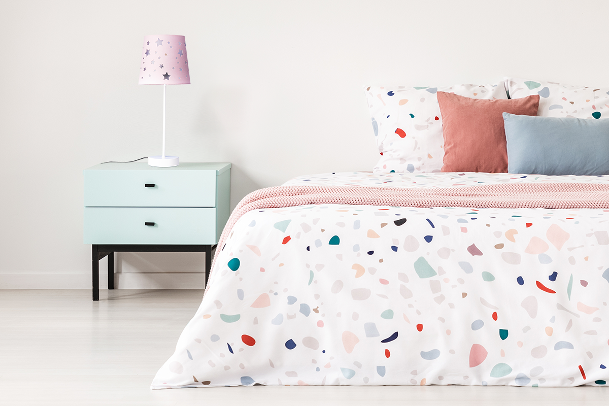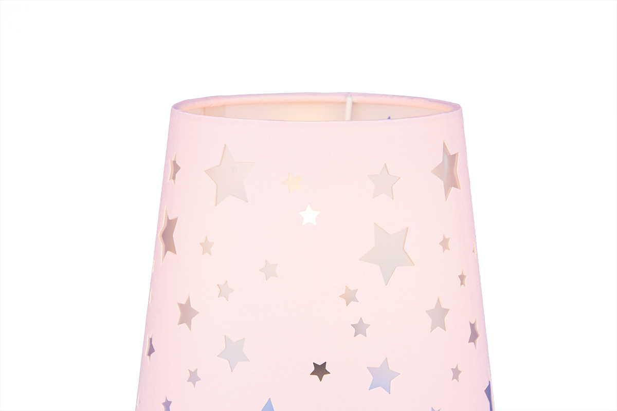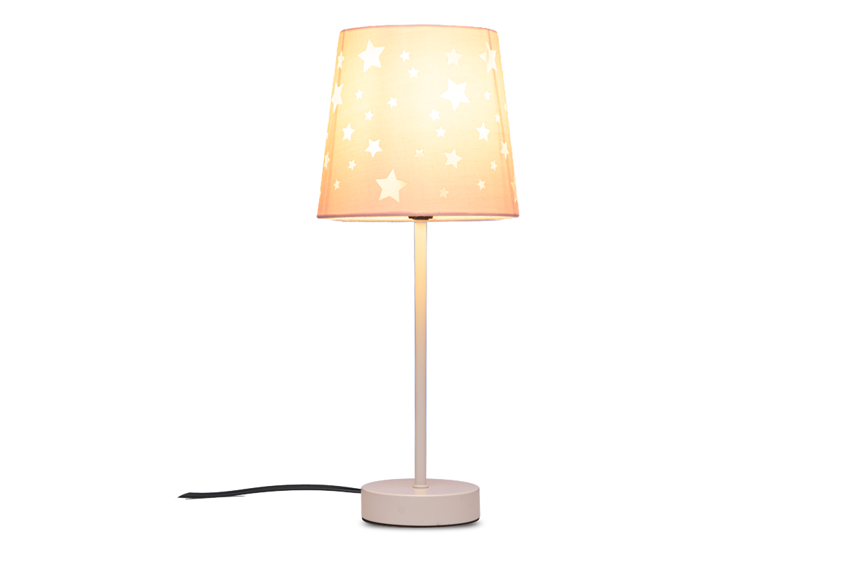 Doskonałym rozwiązaniem do pokoju dziecięcego będzie lampa stołowa z serii TATI. Prosta budowa oparta na metalowym trzonie pozwala na łatwe jej przestawianie oraz sprawia, że lampa jest odporna na uszkodzenia. Przytulnym elementem jest klosz lampy udekorowany gwiazdkami, dzięki czemu lampa daje efekt rozświetlonego nocą nieba. Taki wzór z pewnością spodoba się każdemu młodemu użytkownikowi.