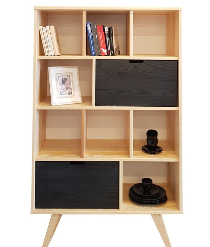 Regał Monti to wariacja na temat stylu skandynawskiego i niekonwencjonalnej stylistyki retro. Dzięki dużej ilości półek pozwala na wyeksponowanie ulubionych elementów dekoracyjnych i przedmiotów codziennego użytku. Dwie pojemne szuflady pomogą za to ukryć wszelkie rzeczy, których nie chcesz pozostawić na widoku i tym samym zachować porządek w pokoju.To, czym wyróżnia się ten stylowy regał, jest oryginalny design oaz smukłe nóżki.