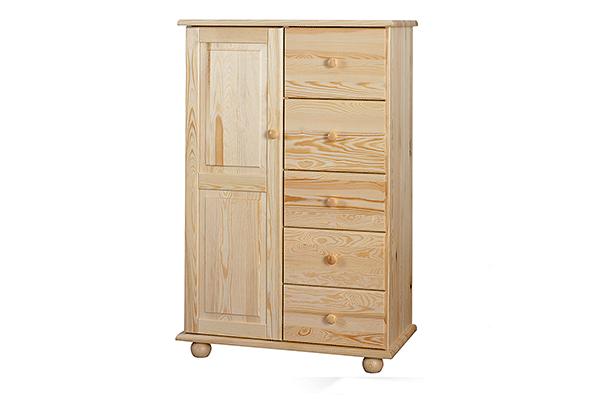 doniczki z kwiatami.Na szczególną uwagę zasługuje też wygląd komody. Jej klasyczny styl wkomponuje się w każdą przestrzeń, a wykonanie z pięknego drewna sosnowego wniesie do wnętrza dużo przytulności. Całą konstrukcję charakteryzuje wyjątkowa trwałość i solidne wykonanie, dzięki czemu mebel posłuży Ci przez wiele lat użytkowania.