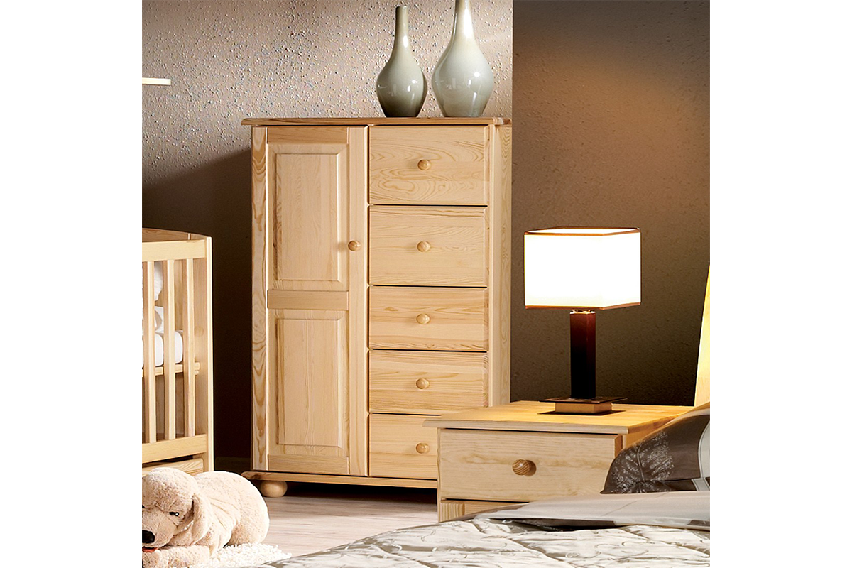 Taka kombinacja doskonale wpisuje się w uniwersalną estetykę, która nigdy nie wychodzi z mody.Meble z kolekcji TARDA zostały wykonane z wysokiej klasy, jasnego litego drewna sosnowego, posiadającego certyfikat FSC. Materiał ten charakteryzuje się dużą odpornością, co gwarantuje z kolei wieloletnie, bezproblemowe użytkowanie. Posiada też właściwości antystatyczne, które zapobiegają osadzaniu się kurzu. Kolekcja będzie zatem dobrym wyborem dla alergików i małych dzieci. Idealnie wkomponuje się też we wnętrza skandynawskie i rustykalne.