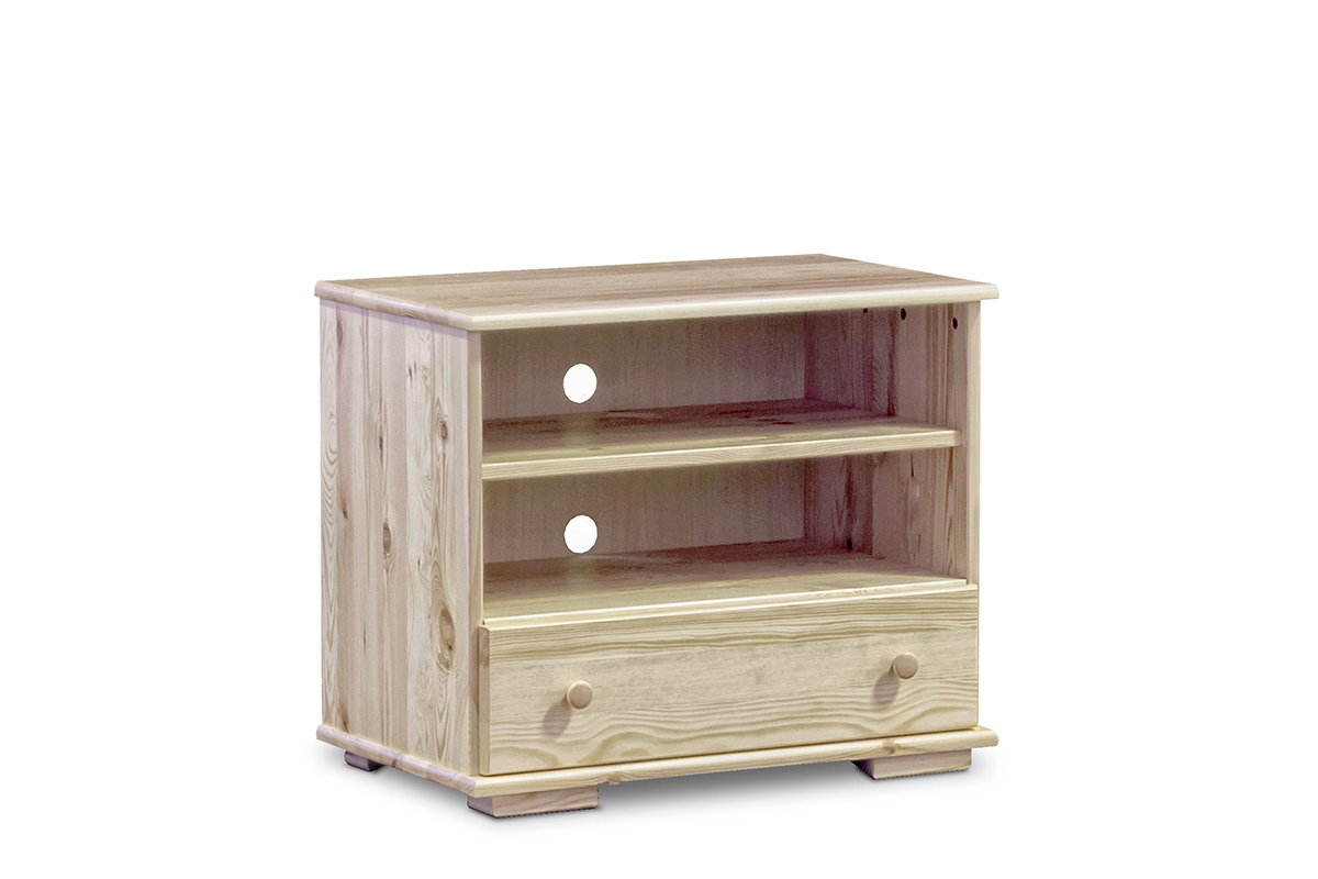 Ze względu na swoje niewielkie wymiary szafka RTV z serii LISSO to znakomita propozycja szafki pod telewizor do pomieszczeń o małej powierzchni. Sprawdzi się więc perfekcyjnie np. w niewielkim mieszkaniu w bloku lub w pokoju zaaranżowanym na poddaszu. W dolnej części szafka została wyposażona w pojemną szufladę, a w górnej – w półki, na których z łatwością pomieścisz sprzęt elektroniczny. Szafka RTV wpisuje się w konwencję stylu tradycyjnego. Mebel został wykonany z pięknego, litego drewna sosnowego o ciepłej barwie, które zdobią zaokrąglone krawędzie oraz kuliste uchwyty. Surowiec, z jakiego szafka RTV jest zbudowana, posiada certyfikat FSC, stanowiący gwarancję solidności i wytrzymałości. Dodatkowo całość została pokryta ekologicznym lakierem do drewna, co zwiększa jego odporność na uszkodzenia.