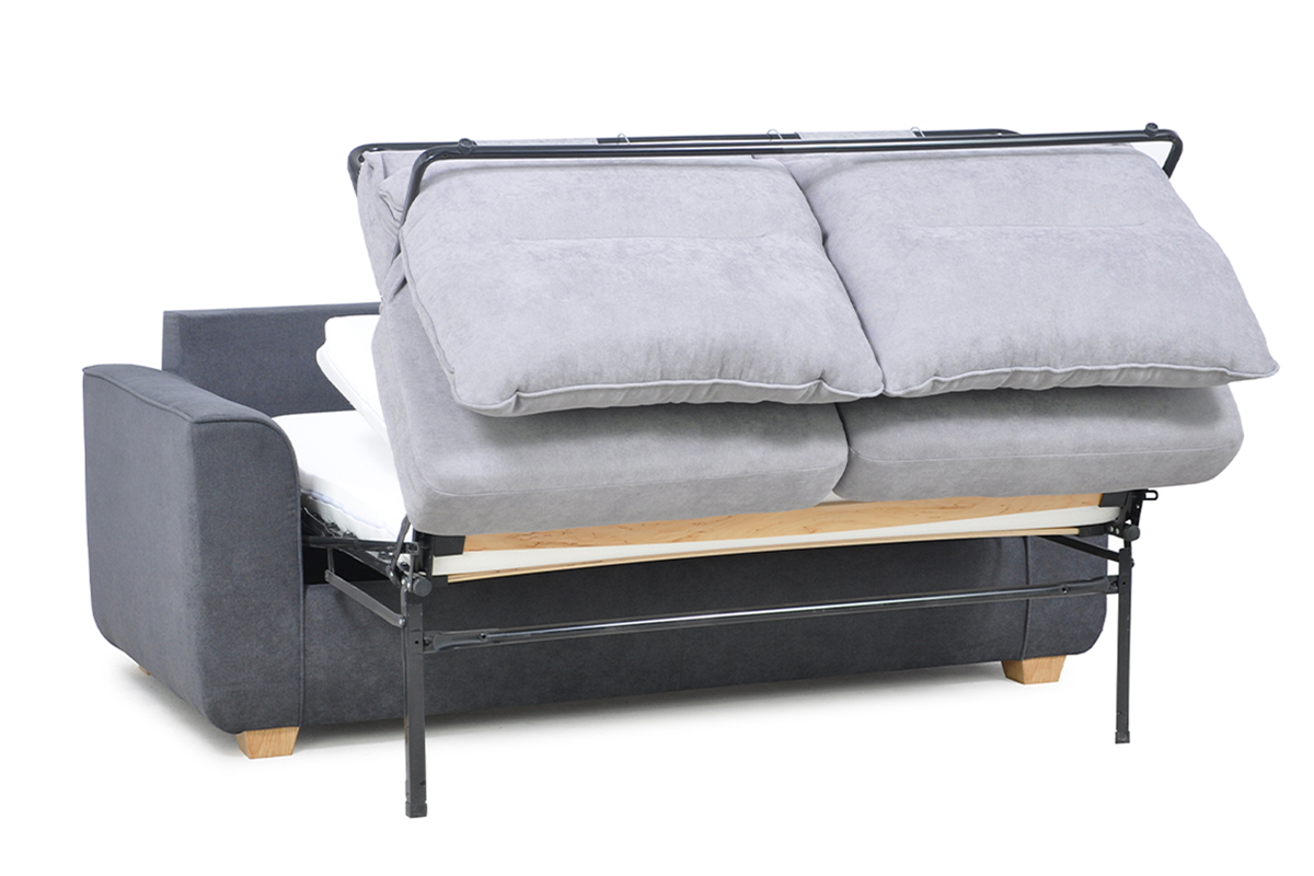 Ta kompaktowa sofa dwuosobowa nie zajmuje dużo miejsca, a kryje w sobie wygodne miejsce do spania. Po rozłożeniu materaca powierzchnia spania wynosi 135x191 cm, wystarczająco, by domownicy mogli na nim wypocząć. Jest to sofa idealna do małego salonu.