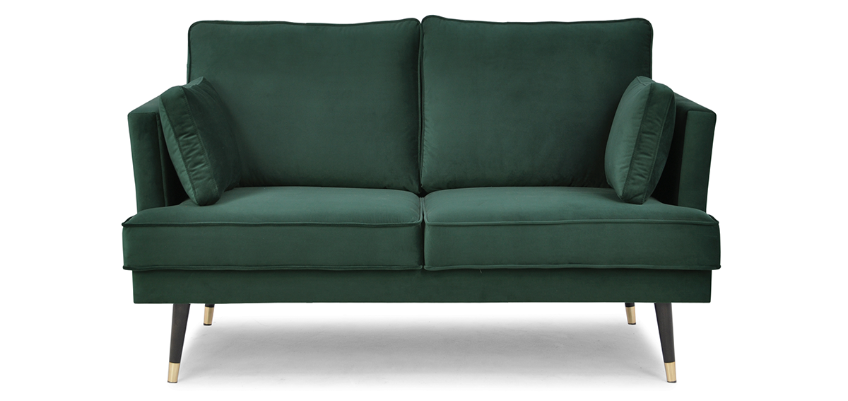 Kompaktowa sofa w wyjątkowym stylu, idealna do małych mieszkań. Tapicerka tej eleganckiej sofy z kolekcji Falco wykonana jest z miękkiego, przytulnego weluru z delikatnym połyskiem. Siedzisko oraz oparcie zrobione są z trwałej i odpornej na odkształcenia pianki, która gwarantuje wygodne siedzenie na sofie z solidnym podparciem dla całego ciała.
