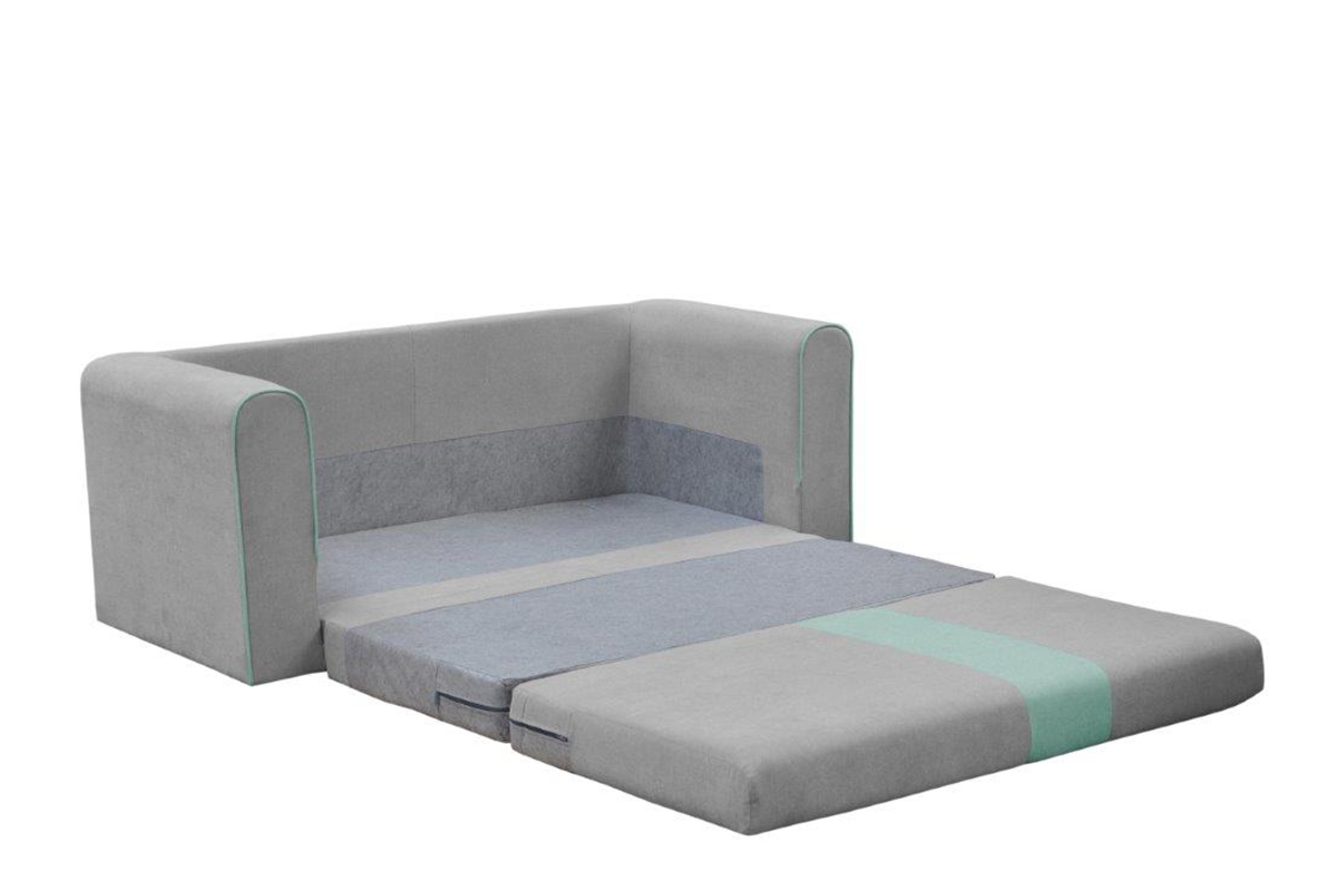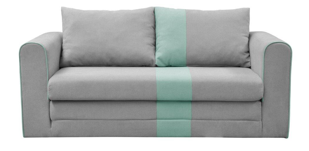 Rozkładana sofa MANKE ma ciekawą kolorystykę, zimna, stonowana szarość połączona z miętowym zdobieniem, z pewnością przyciągnie uwagę tych, którzy lubią niebanalne rozwiązania i szukają interesujących mebli. Ta oryginalna sofa wykonana jest z wysokiej jakości pianki, wykończonej wytrzymałą tapicerką o wyraźnym kolorze.