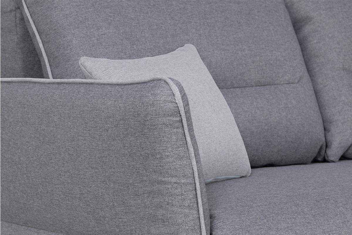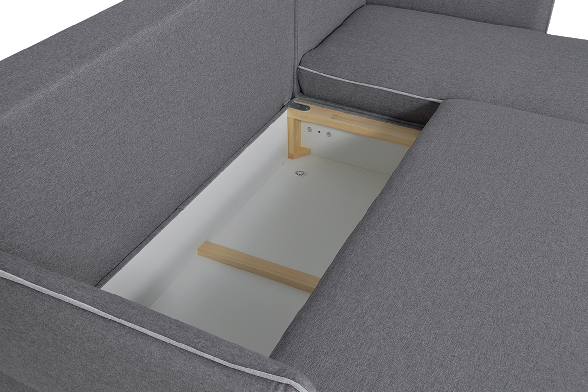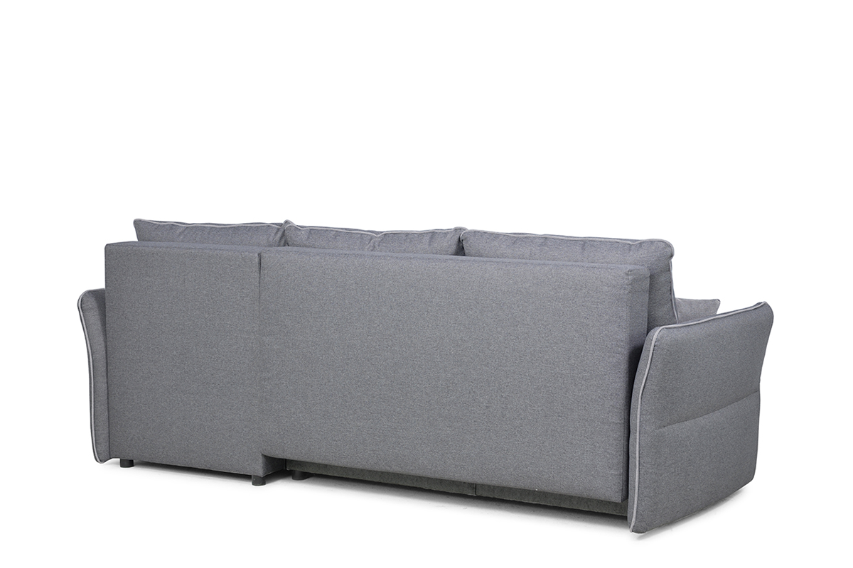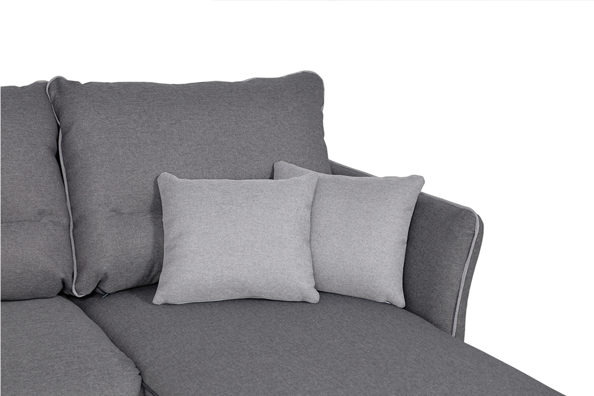 Duży komfortowy narożnik do dużego salonu z kolekcji Justi. Ta szara rozkładana sofa narożna jest wygodnym siedziskiem oraz w razie potrzeby może się stać wygodnym łóżkiem, o powierzchni 204x 130 cm. W sofie zamontowano wygodny mechanizm rozkładania typu przewracak, aby rozłożyć spanie wystarczy pociągnąć siedzisko do siedzi i opuścić oparcie na jego miejsce i wygodne dodatkowe łózko gotowe.