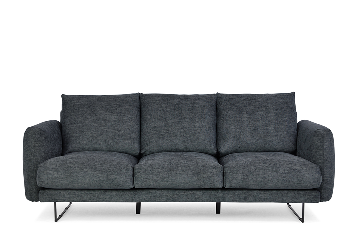Elegancka, sofa w stylu modern, w sam raz do nowoczesnych, loftowych wnętrz, choć dobrze będzie wyglądać nie tylko tam. Sofa trzyosobowa to ciekawy mebel, o prostym, aczkolwiek mającym pewne smaczki designie, którego najistotniejszą zaletą jest z pewnością to, że jest to wyjątkowo wygodna sofa. A to dzięki zastosowaniu plis sprężynujących, które stanowią dobre podparcie podczas siedzenia w siedzisku oraz elastycznej pianki HR w podłokietnikach i oparciu.