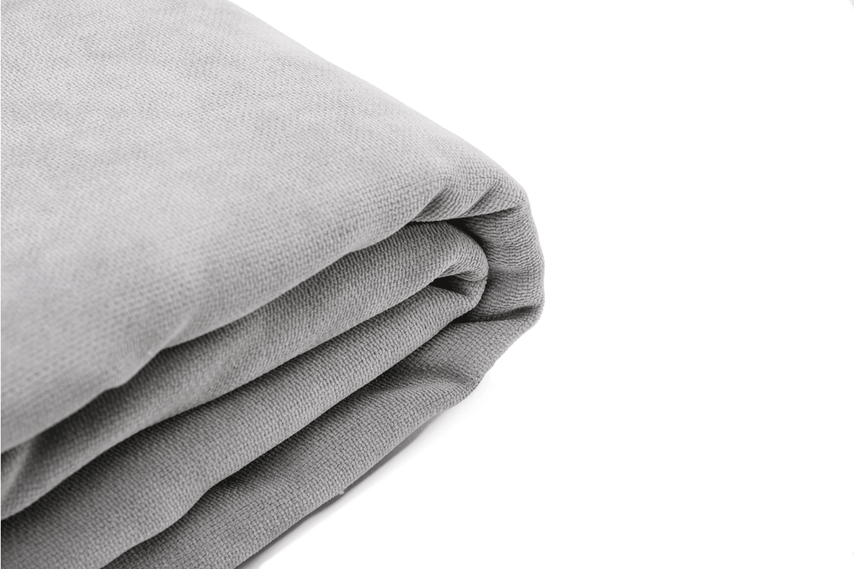 Ta pięknie prezentująca się sofa to uniwersalny i solidny mebel, którego korpus jest zrobiony z trwałej płyty, pokrytej obustronnie miękką i sprężystą pianką, powleczoną przyjemnym w dotyku, wytrzymałym pokrowcem, który za pomocą specjalnego systemu rzepów, można dokładnie ułożyć i przymocować do sofy.