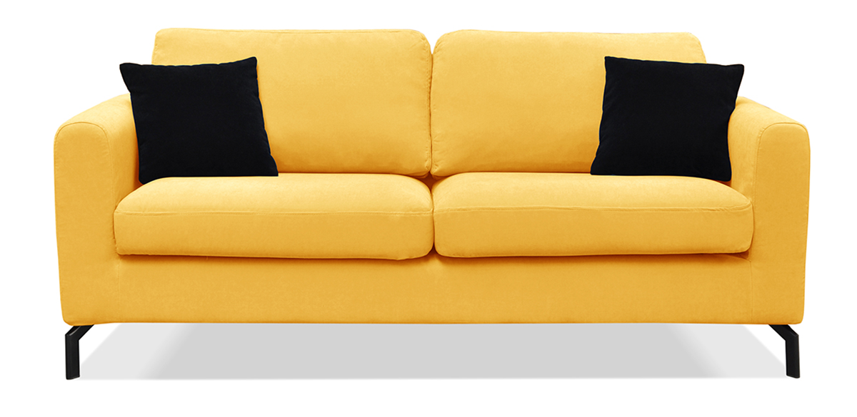 Ta pięknie prezentująca się sofa to uniwersalny i solidny mebel, którego korpus jest zrobiony z trwałej płyty, pokrytej obustronnie miękką i sprężystą pianką, powleczoną przyjemnym w dotyku, wytrzymałym pokrowcem, który za pomocą specjalnego systemu rzepów, można dokładnie ułożyć i przymocować do sofy.