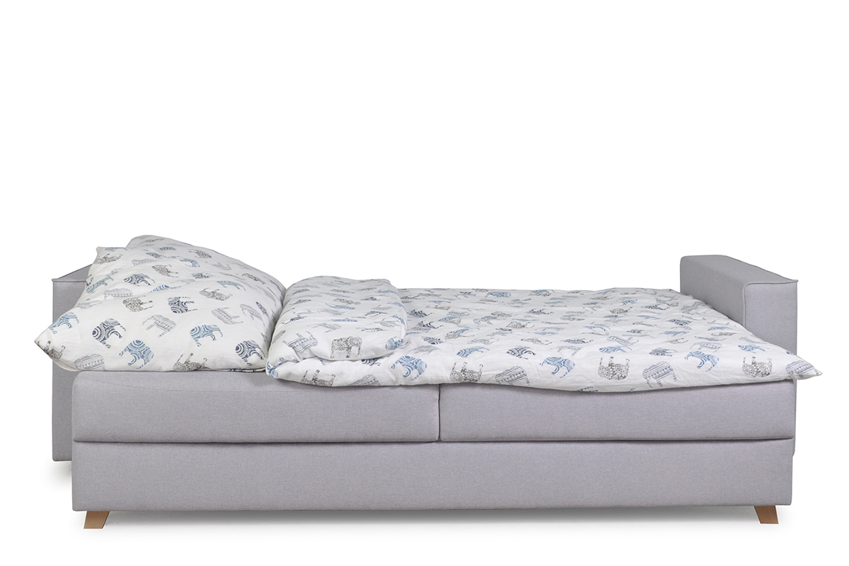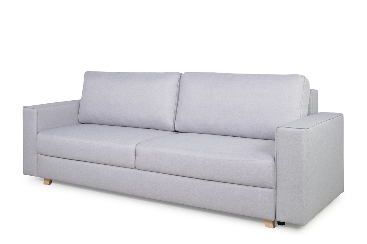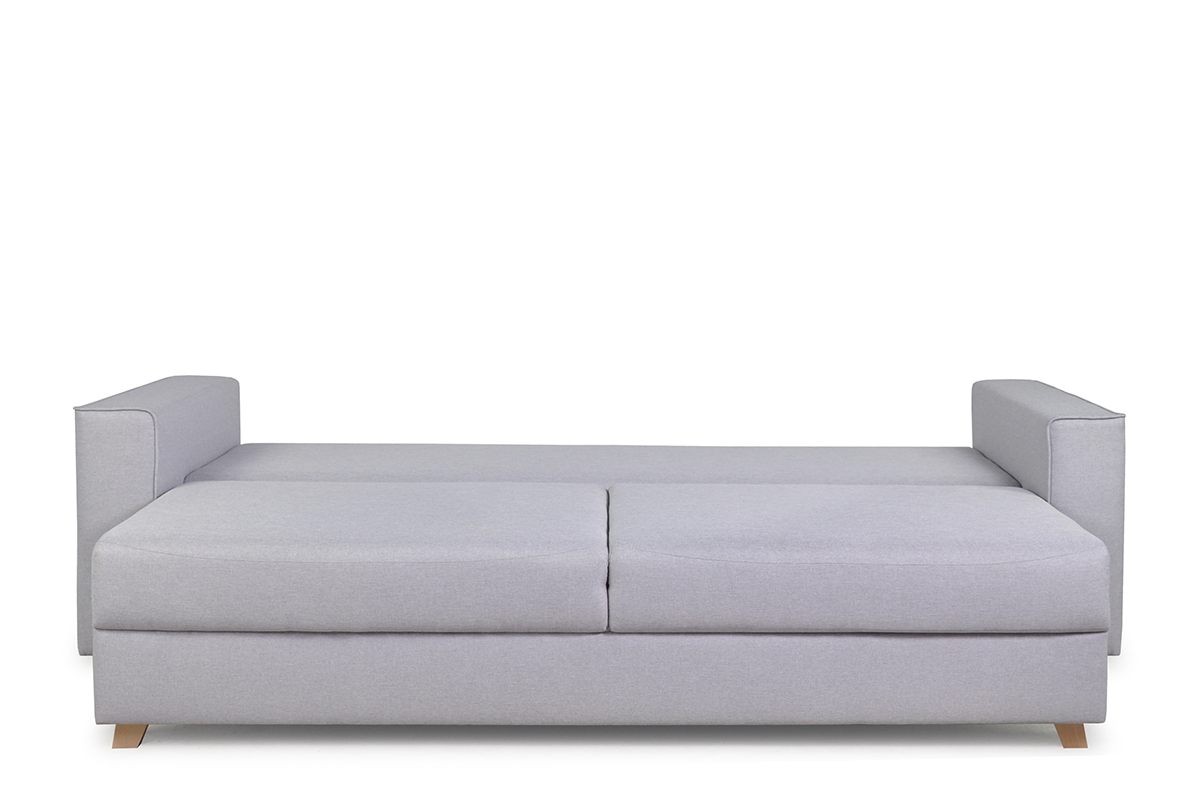 Ta dwuosobowa, rozkładana sofa Mungo jest najlepszym dowodem na to, że mniej, znaczy więcej. Minimum zdobień, maksimum funkcjonalności. Ta wygodna, klasyczna sofa może być wygodną kanapą do siedzenia, a kiedy będziesz potrzebować dodatkowego miejsca do spania, to za pomocą kilku ruchów zmieni się w duże łózko o powierzchni 200x143 cm. A wszystko to, za pomocą wygodnego systemu rozkładania przewracak.