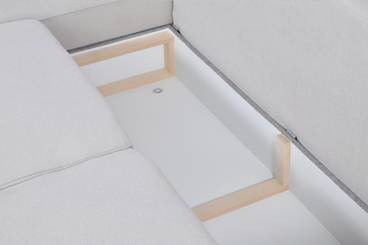 Aby rozłożyć łóżko, wystarczy pociągnąć siedzisko do siebie, a resztę zrobi wygodny automat. Równie łatwo łóżko składa się z powrotem w sofę narożną, wystarczy wsunąć siedzisko do środka.