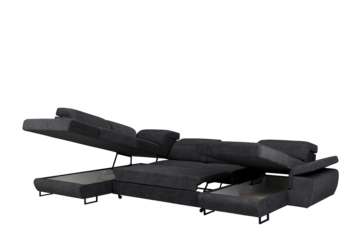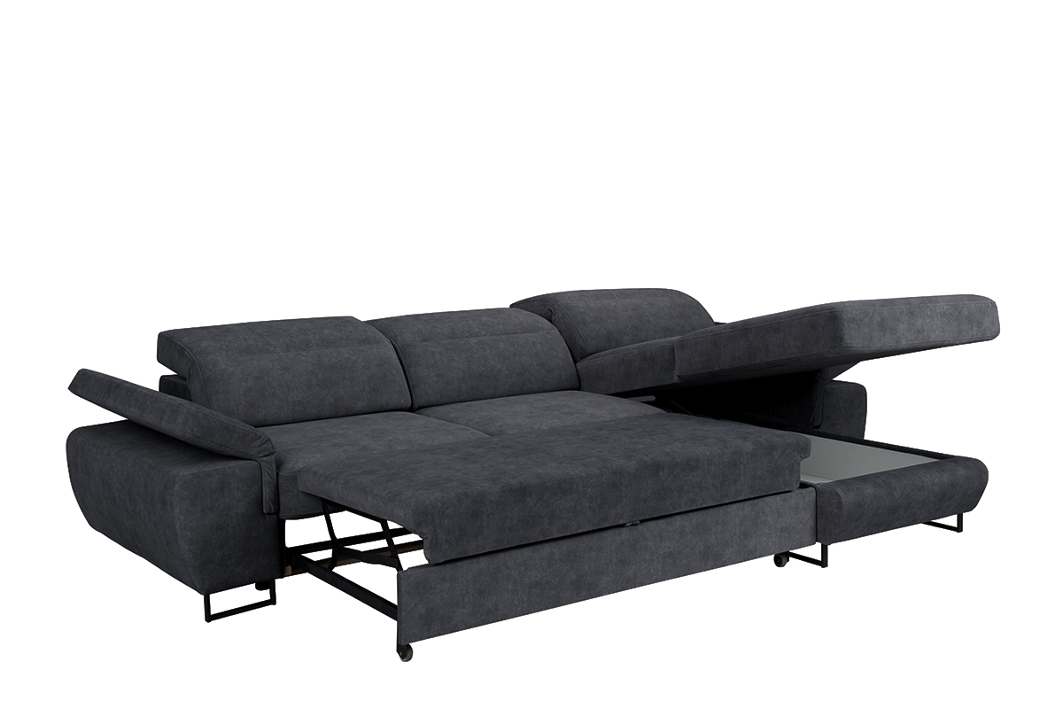 Niebanalny design i przyjemne w dotyku obicie to jedna z wielu zalet, jakie posiada narożnik z kolekcji Luigi. Regulowane oparcie z pianki poliuretanowej pozwala no dostosowanie odpowiedniego poziomu nachylenia, przez co użytkowanie jest jeszcze bardziej komfortowe. Mebel przystosowany jest do noclegu – system rozkładania typu delfin jest nie tylko prosty w obsłudze, ale oferuje również wygodną powierzchnię do spania.