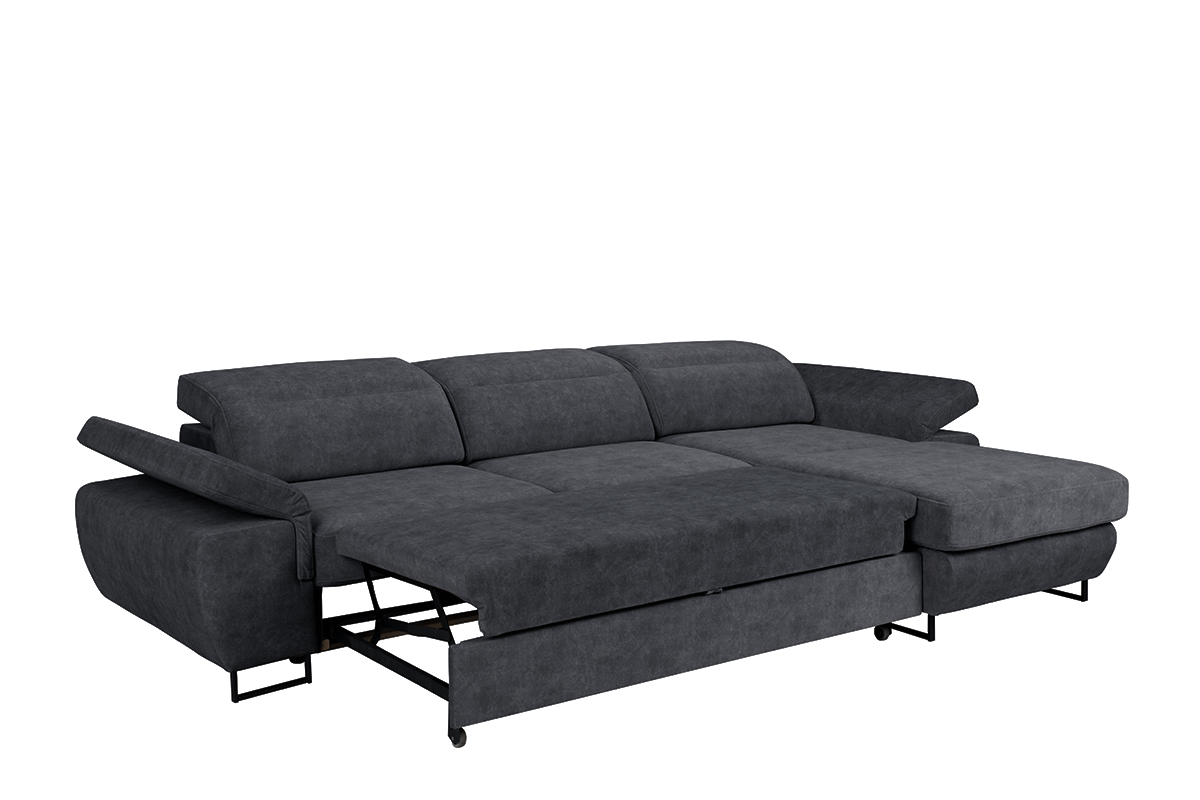 Niebanalny design i przyjemne w dotyku obicie to jedna z wielu zalet, jakie posiada narożnik z kolekcji Luigi. Regulowane oparcie z pianki poliuretanowej pozwala no dostosowanie odpowiedniego poziomu nachylenia, przez co użytkowanie jest jeszcze bardziej komfortowe. Mebel przystosowany jest do noclegu – system rozkładania typu delfin jest nie tylko prosty w obsłudze, ale oferuje również wygodną powierzchnię do spania.