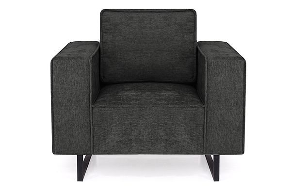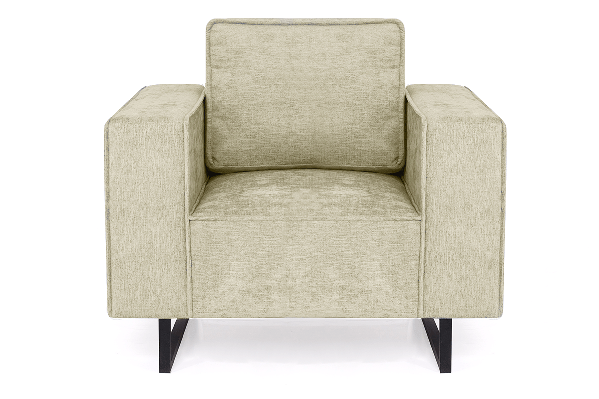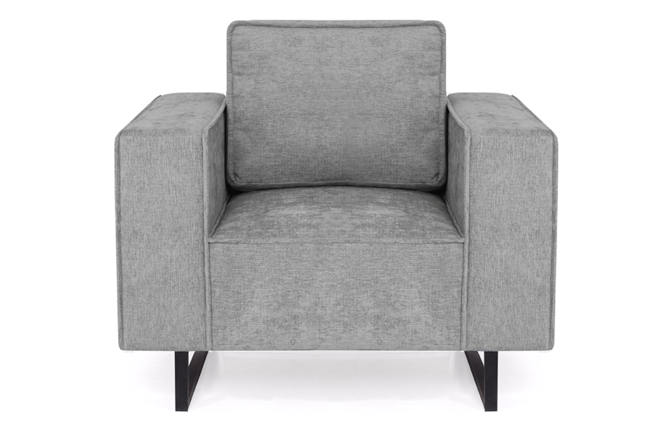 Mebel ma wytrzymałą konstrukcję dzięki stelażowi z mieszanki materiałów drewnianych. Niezwykłą ozdobą fotela są metalowe nóżki, delikatnie wkomponowane w podstawę mebla i nadające mu nowoczesnego wyglądu. Fotel posiada warianty kolorystyczne, pasujące do różnych stylizacji: ciemny i jasny odcień szarości, beżowy oraz miętowy.