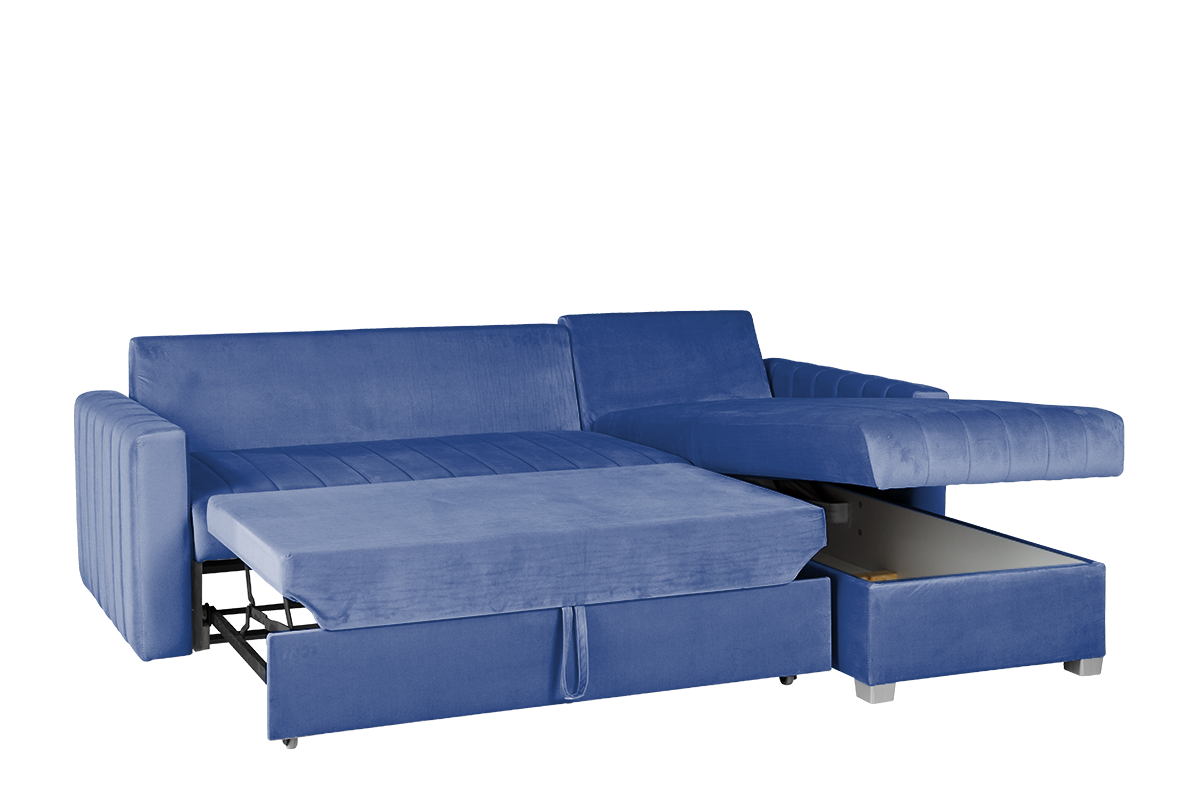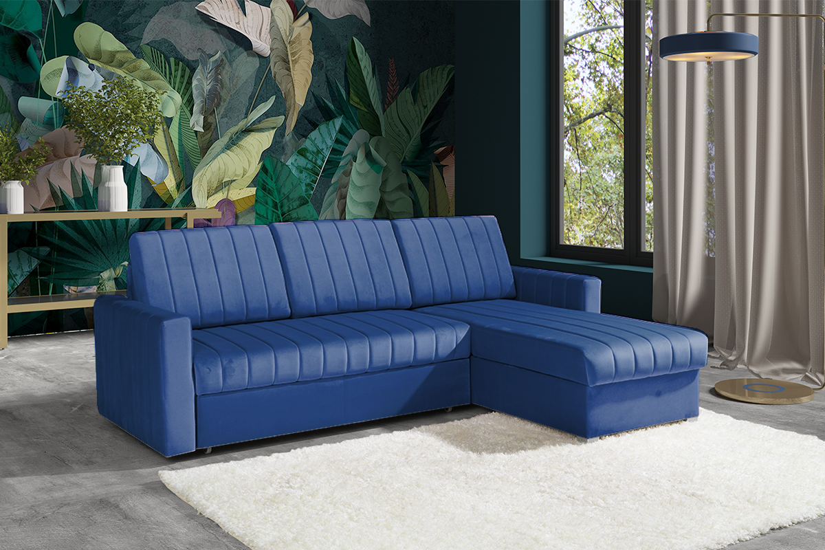 Niepowtarzalny narożnik z kolekcji Celin to prawdziwa perełka wśród klasycznego i standardowego wystroju wnętrza. Aksamitne welurowe obicie stanowi dekorację samą w sobie, nadając błysku domowym czterem ścianom. Wyjątkowy design przekłada się również na wygodę i komfort użytkowania, dzięki oparciu i siedzisku z pianki poliuretanowej. Narożnik z łatwością zastępuje łóżko za sprawą systemu rozkładania typu delfin.