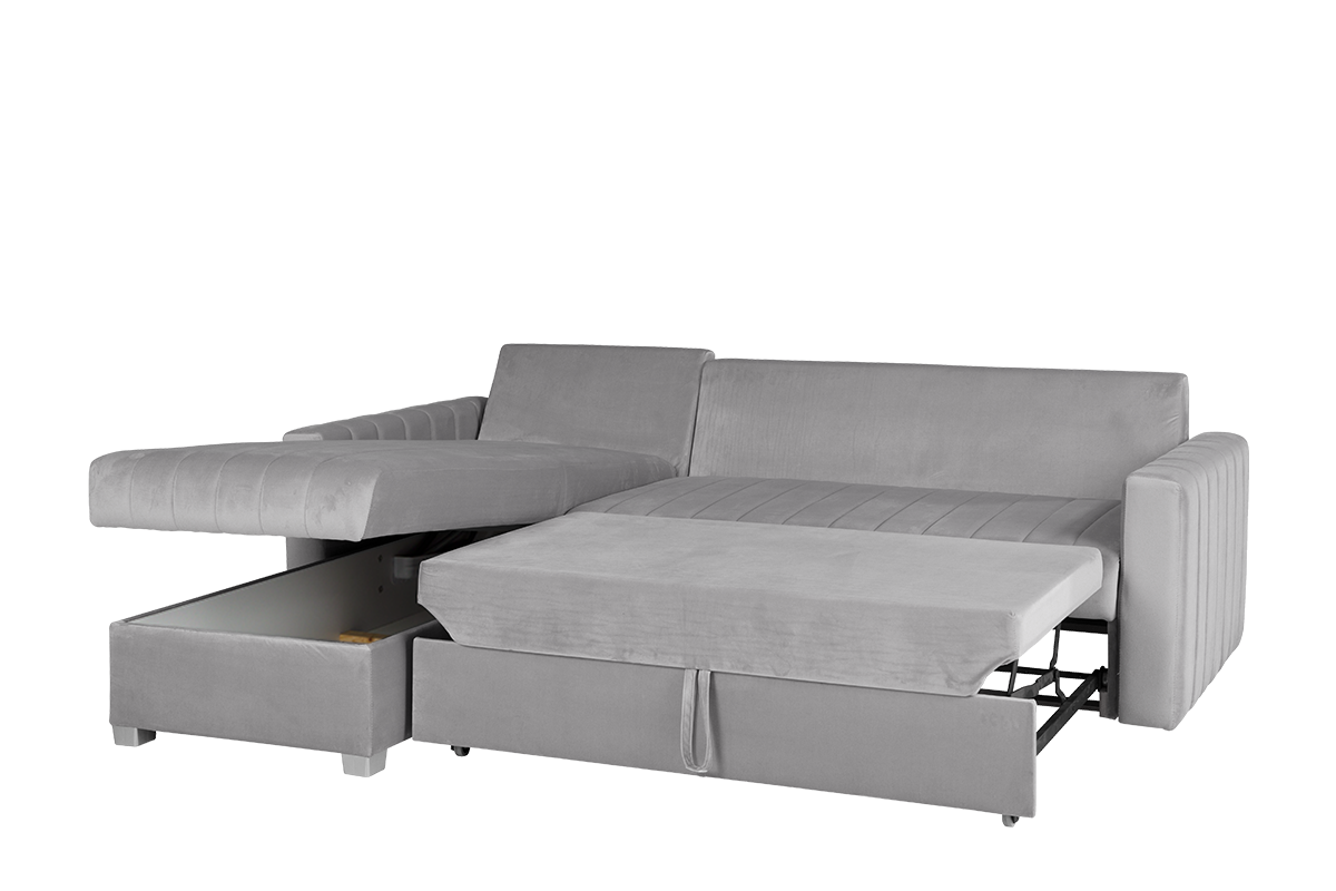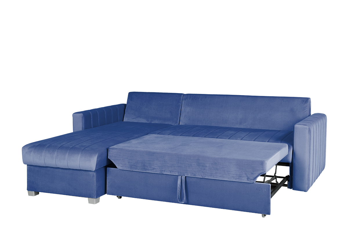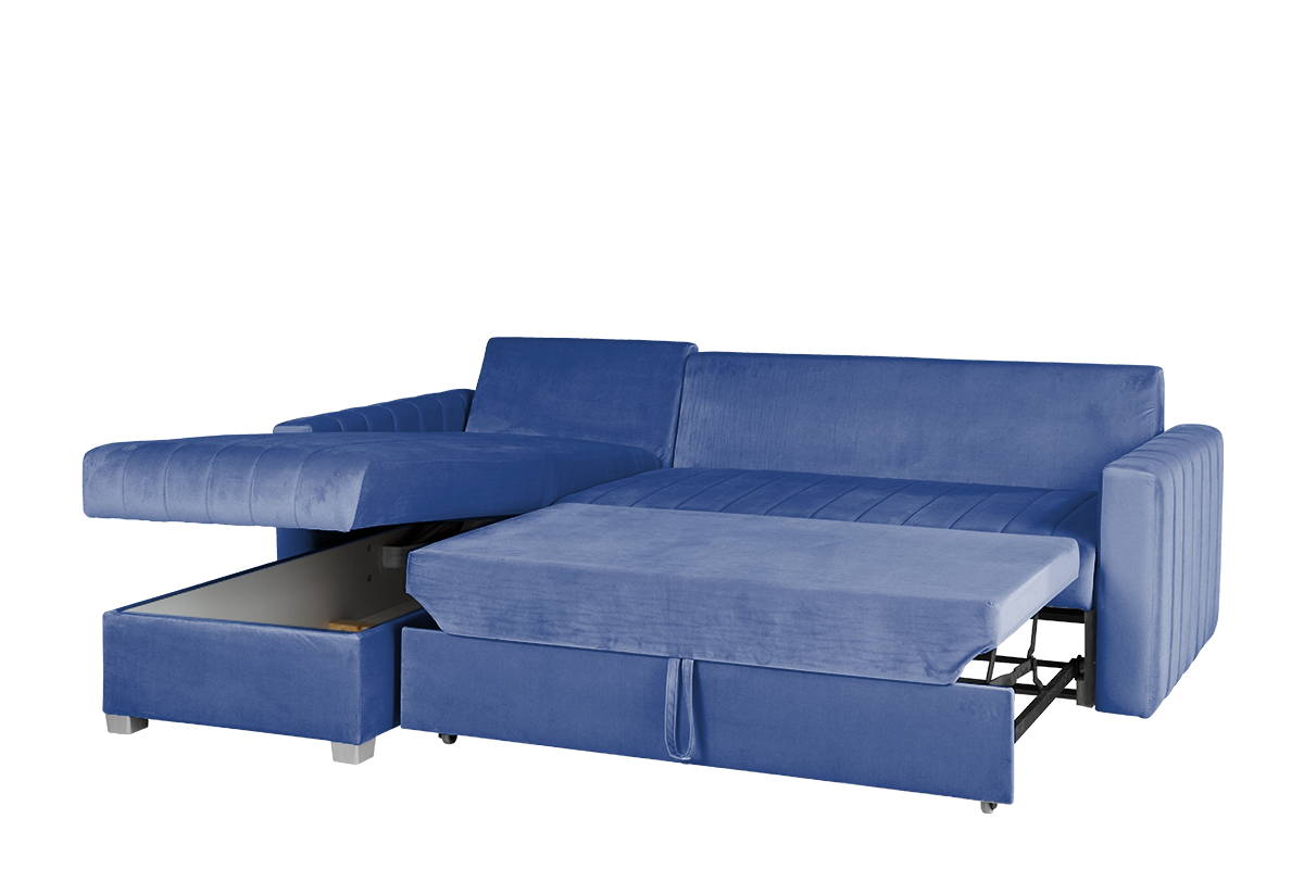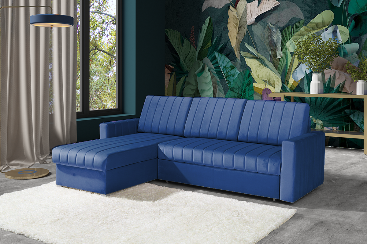 Niepowtarzalny narożnik z kolekcji Celin to prawdziwa perełka wśród klasycznego i standardowego wystroju wnętrza. Aksamitne welurowe obicie stanowi dekorację samą w sobie, nadając błysku domowym czterem ścianom. Wyjątkowy design przekłada się również na wygodę i komfort użytkowania, dzięki oparciu i siedzisku z pianki poliuretanowej. Narożnik z łatwością zastępuje łóżko za sprawą systemu rozkładania typu delfin.