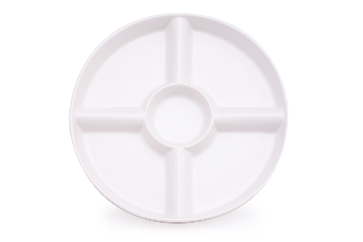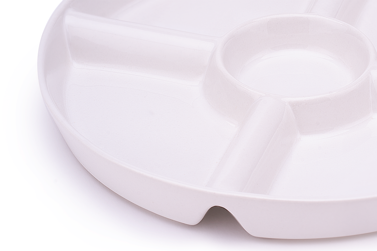 Półmisek do serwowania CRISTA świetnie sprawdzi się podczas spotkań ze znajomymi. W zewnętrznych częściach półmiska można serwować przekąski, natomiast w środkowej pasujące do nich dipy.