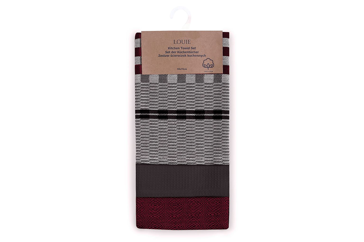 LOUIE zobacz całą kolekcję Zestaw ścierek kuchennych (3szt.) - kolor szary/czerwony