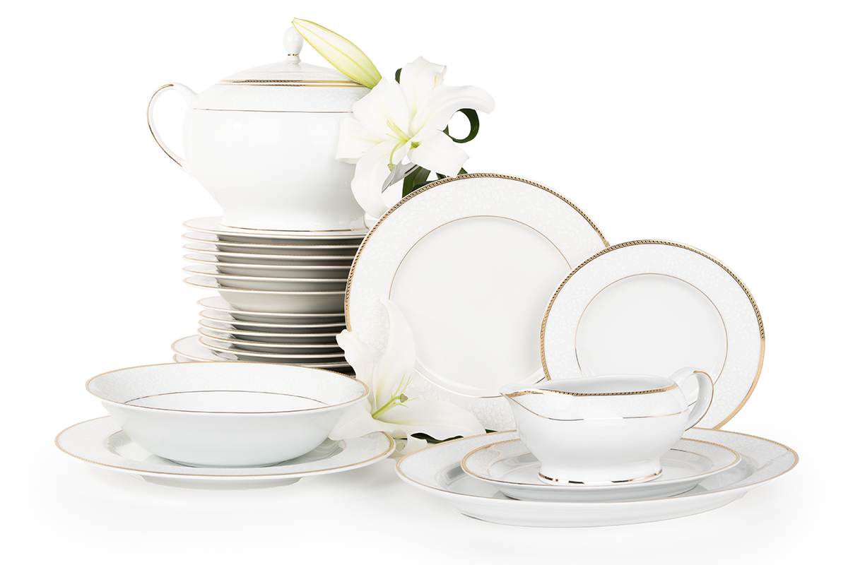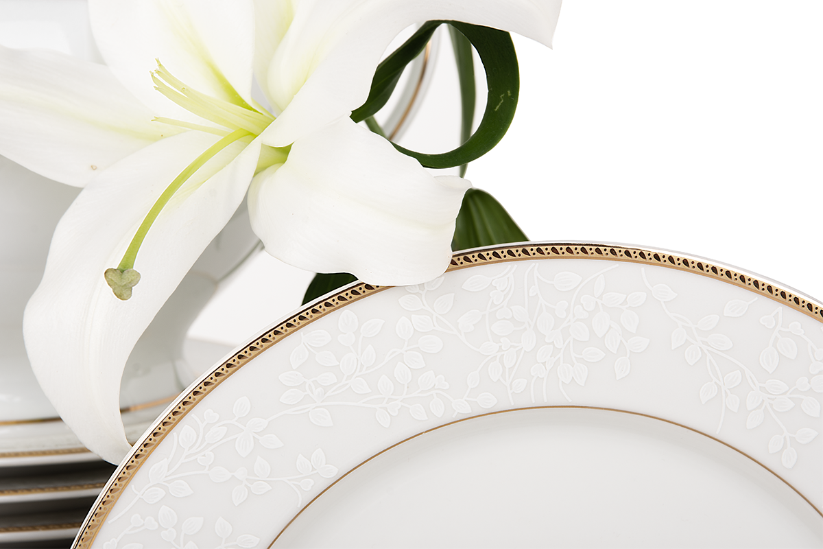 Wytworna kolekcja porcelanowa New Hollis Gold została wykończona trójwymiarowymi i naturalnymi motywami w bieli, a przyjemne dla oka pozłacane lub platynowe brzegi nadają im dodatkowego szyku i elegancji. Naczynia te doskonale prezentują się podczas eleganckiej kolacji, jak i podczas mniej formalnego spotkania. Również klasyczne kształty naczyń z tej kolekcji sprawią, że będą pasowały do każdego wnętrza.