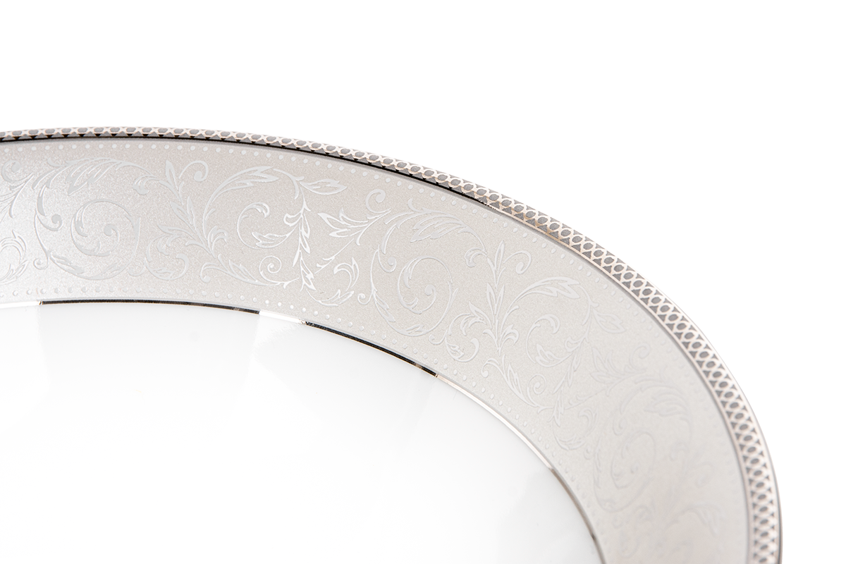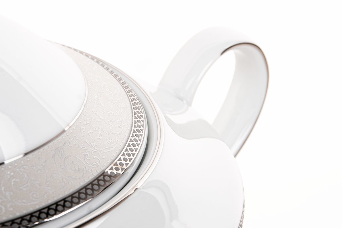 Nieprzeciętna kolekcja naczyń Martha Platin wyróżnia się wyraźne połyskującymi elementami oraz pełnymi elegancji trójwymiarowymi wzorami w odcieniu delikatnie kontrastującym z bielą. To połączenie sprawia, że z przyjemnością będziesz używał tych naczyń zarówno podczas eleganckiej kolacji, jak i podczas mniej formalnego spotkania. Kolekcję wykonano z najwyższej jakości porcelany, dzięki czemu przez długie lata będzie przyozdabiać stół czy wypełniać urokiem przeszklone witrynki.