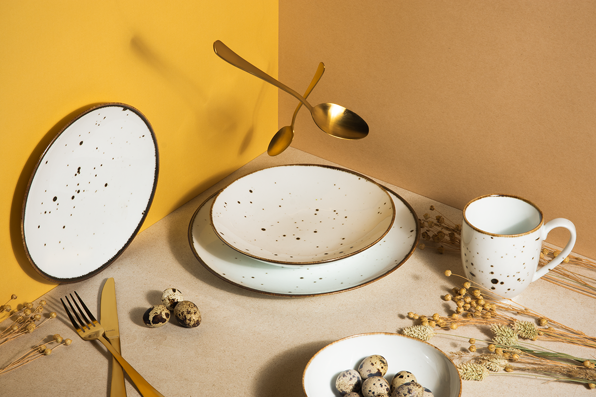 Wysoka zawartość ALUMINA (tlenku glinu-korundu) zwiększająca o ponad 40 % wytrzymałość porcelany ALUMINA na pęknięcia płaszczyzny i ubicia brzegów w porównaniu z tradycyjną porcelaną kaolinową, przy jednoczesnym zachowaniu odporności na zmiany temperatury użytkowej. Wysoka temperatura wypału surowców i szkliwa zapewniająca zwartą strukturę produktu i likwidująca jego porowatość i nasiąkliwość oraz zwiększająca odporność powierzchni szkliwa na pęknięcia i zarysowania.