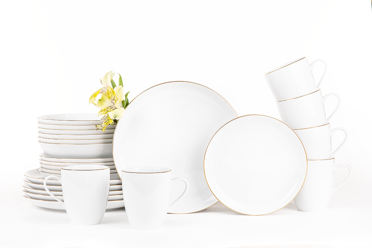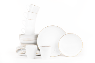 Filigranowa złoto-biała kolekcja NORA ZŁOTA LINIA dzięki swoim klasycznym kształtom i uniwersalnym kolorom doskonale zaprezentuje się podczas eleganckiej kolacji, jak również podczas mniej formalnego spotkania. Zestaw zachwyca eleganckim wykończeniem – złote ranty z wdziękiem odcinają się od pięknej bieli. Kolekcja Nora to wytrzymałe naczynia z porcelany najwyższej jakości, wyprodukowane tylko w polskich fabrykach.
