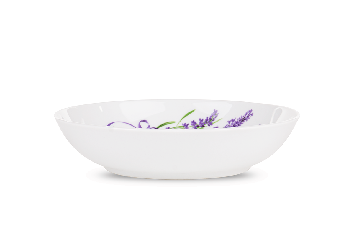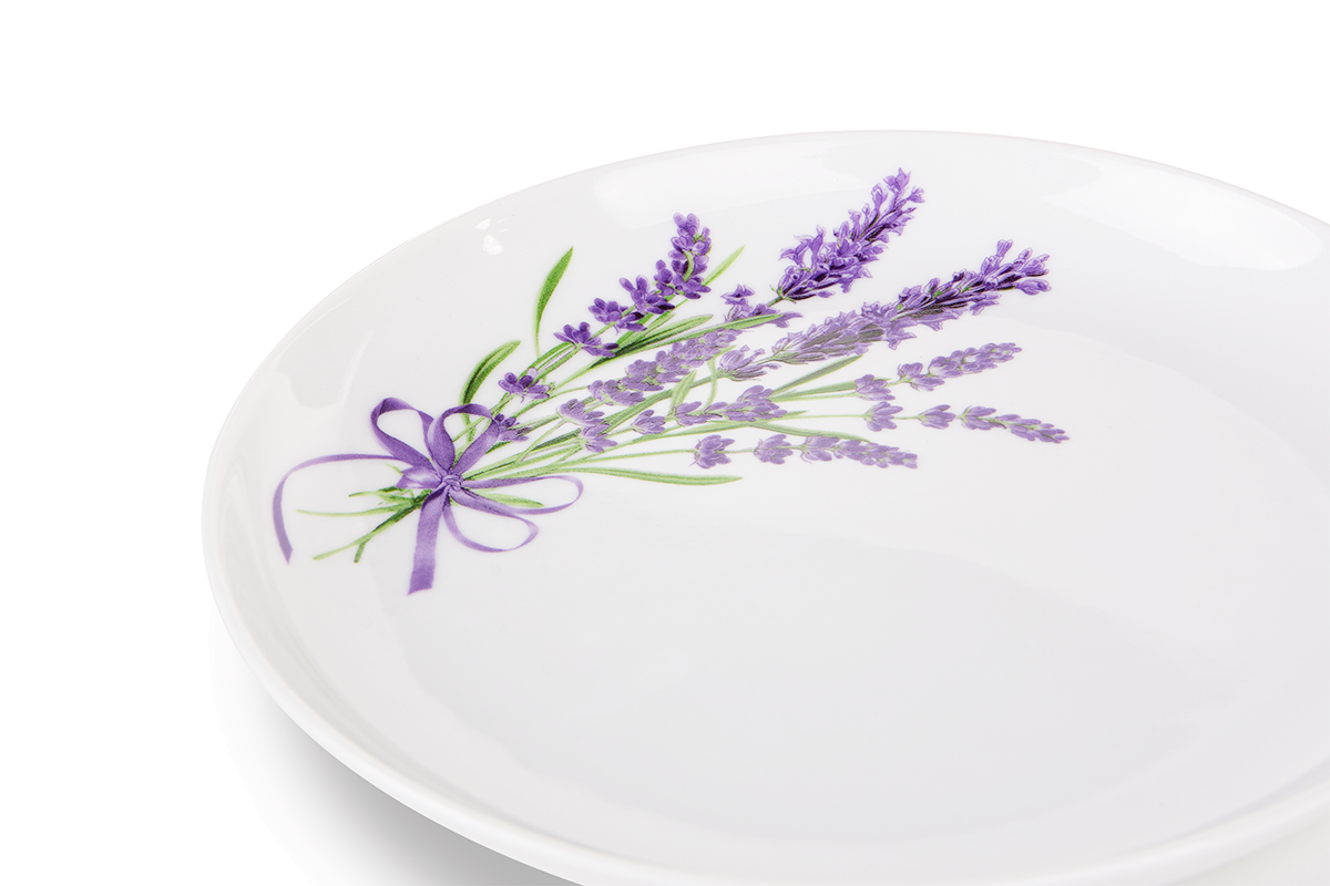 Oryginalna porcelana NORA LAWENDA przykuwa spojrzenie naturalnym motywem lawendy. Fioletowe zdobienia stanowią wyjątkowo dekoracyjny element – będą przyozdabiać stół czy wypełniać urokiem przeszklone witrynki, co nada wnętrzu dodatkowego charakteru. Ponadto porcelana jest wytrzymała i w całości wyprodukowana w polskich fabrykach. Twarde szkliwo zapewnia odporność na zarysowania, a gładka powierzchnia prezentuje się wyjątkowo delikatnie i świeżo.