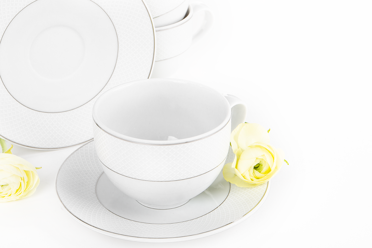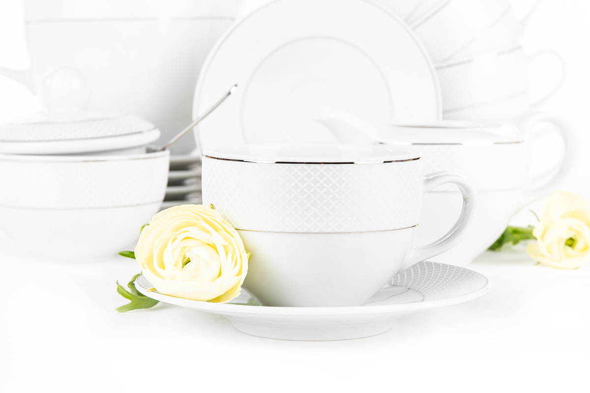 Elegancka kolekcja porcelany AMELIA SATYNA została wyposażona w dekor w postaci delikatnej kratki, który jest wykończony połyskującymi linami w kolorze satynowym. Faktura jest przyjemna w dotyku, a klasyczny kształt naczyń i uniwersalny kolor doskonale zaprezentuje się podczas eleganckiej kolacji, jak również podczas mniej formalnego spotkania. Kolekcja jest wykonana z najwyższej jakości materiałów, co pozwoli Ci korzystać z niej przez długie lata bez straty walorów wizualnych.