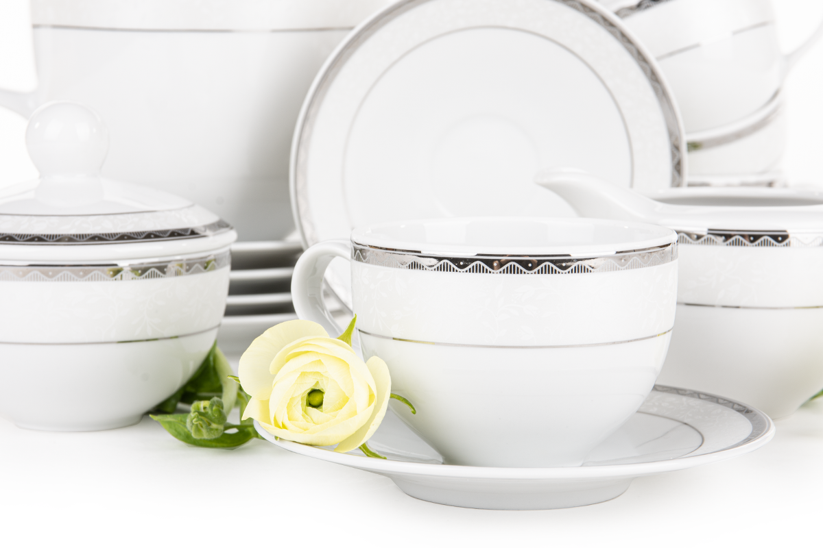 Nie należy używać naczyń w kuchence mikrofalowej. Serwis nadaje się do mycia w zmywarce.