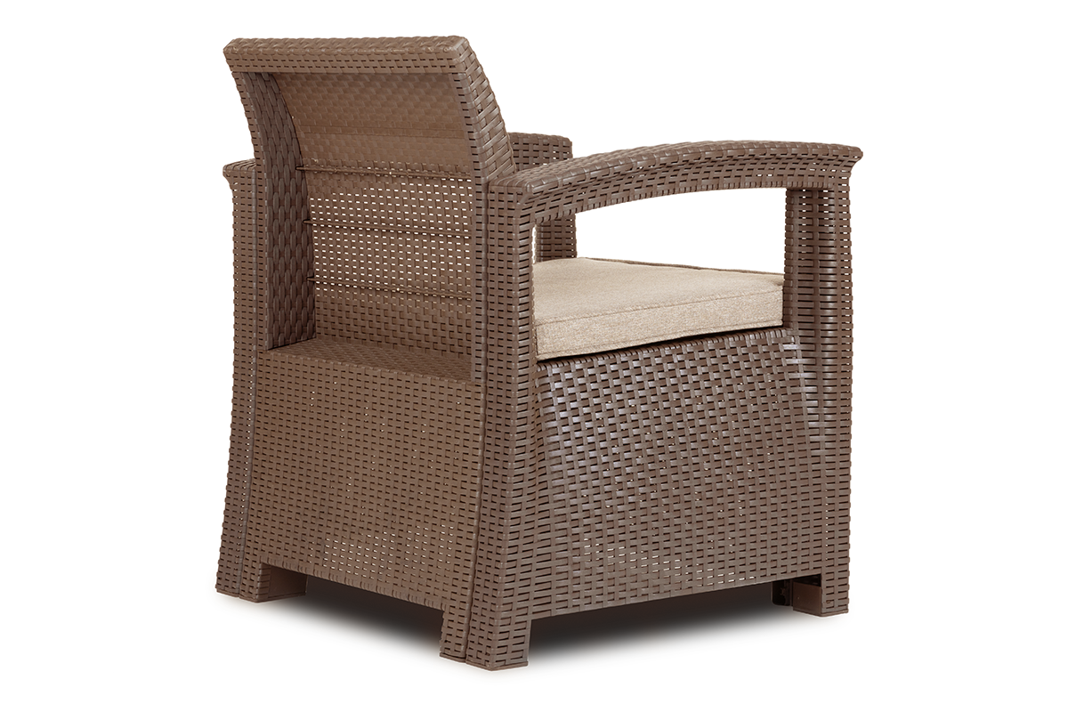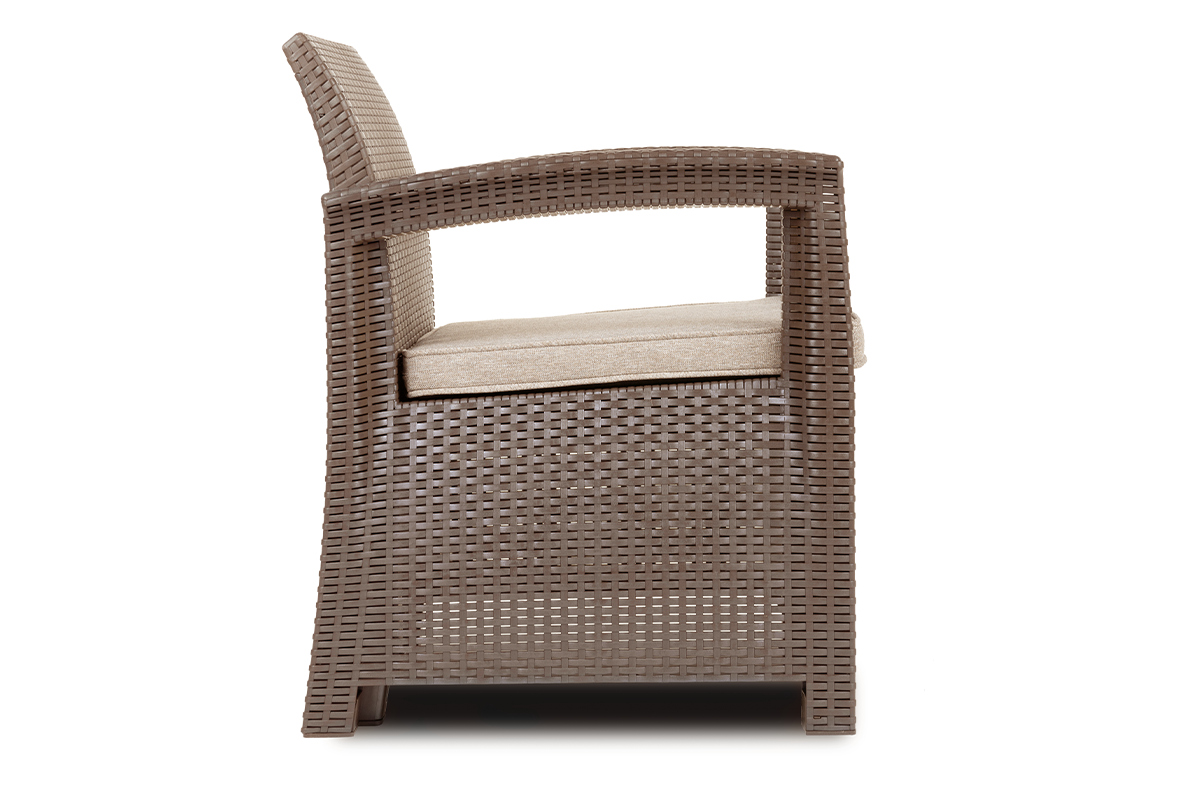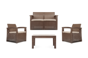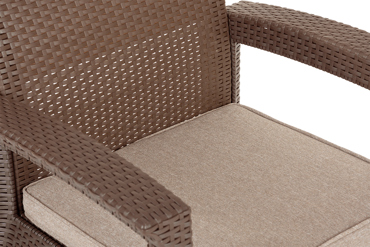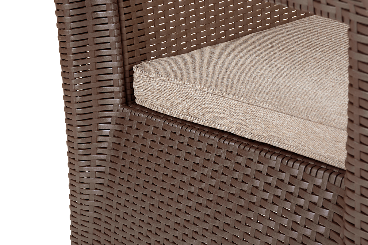 Oryginalny zestaw mebli ogrodowych zachwyca nie tylko swoim wyglądem, ale też specjalnie zaprojektowanym rozwiązaniem – połączeniem wyjątkowo wygodnej poduchy z doskonałą termoregulacją i oddychającą. Szkielet z technorattanu gwarantuje doskonałą odporność na warunki atmosferyczne, a zastosowanie najwyższej jakości mieszanki powoduje, że nasz zestaw jest odporny na promieniowanie UV. Dzięki temu rozwiązaniu meble nie będą się odbarwiać.